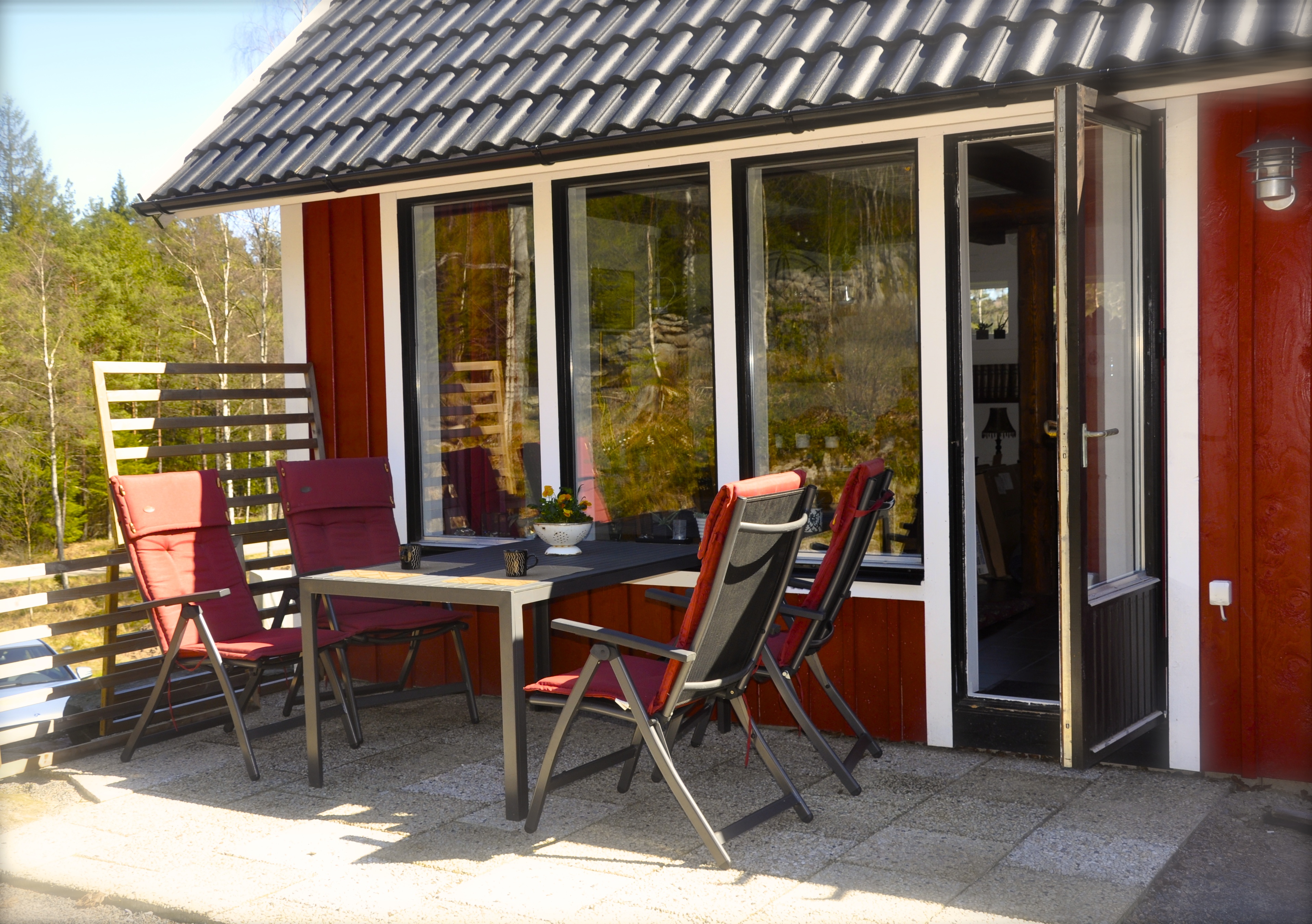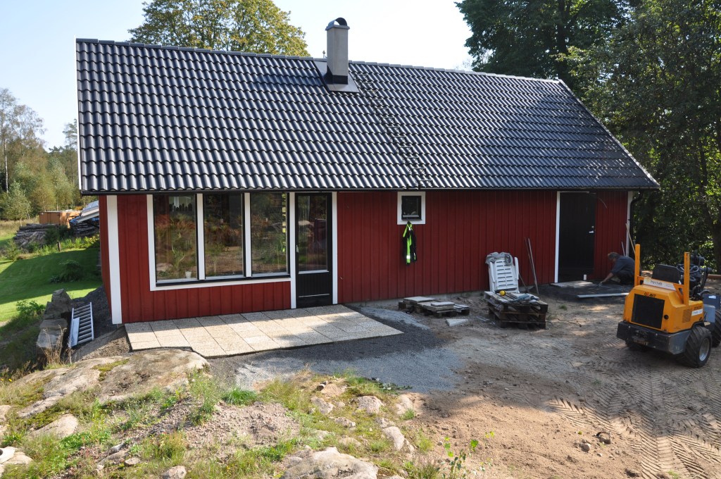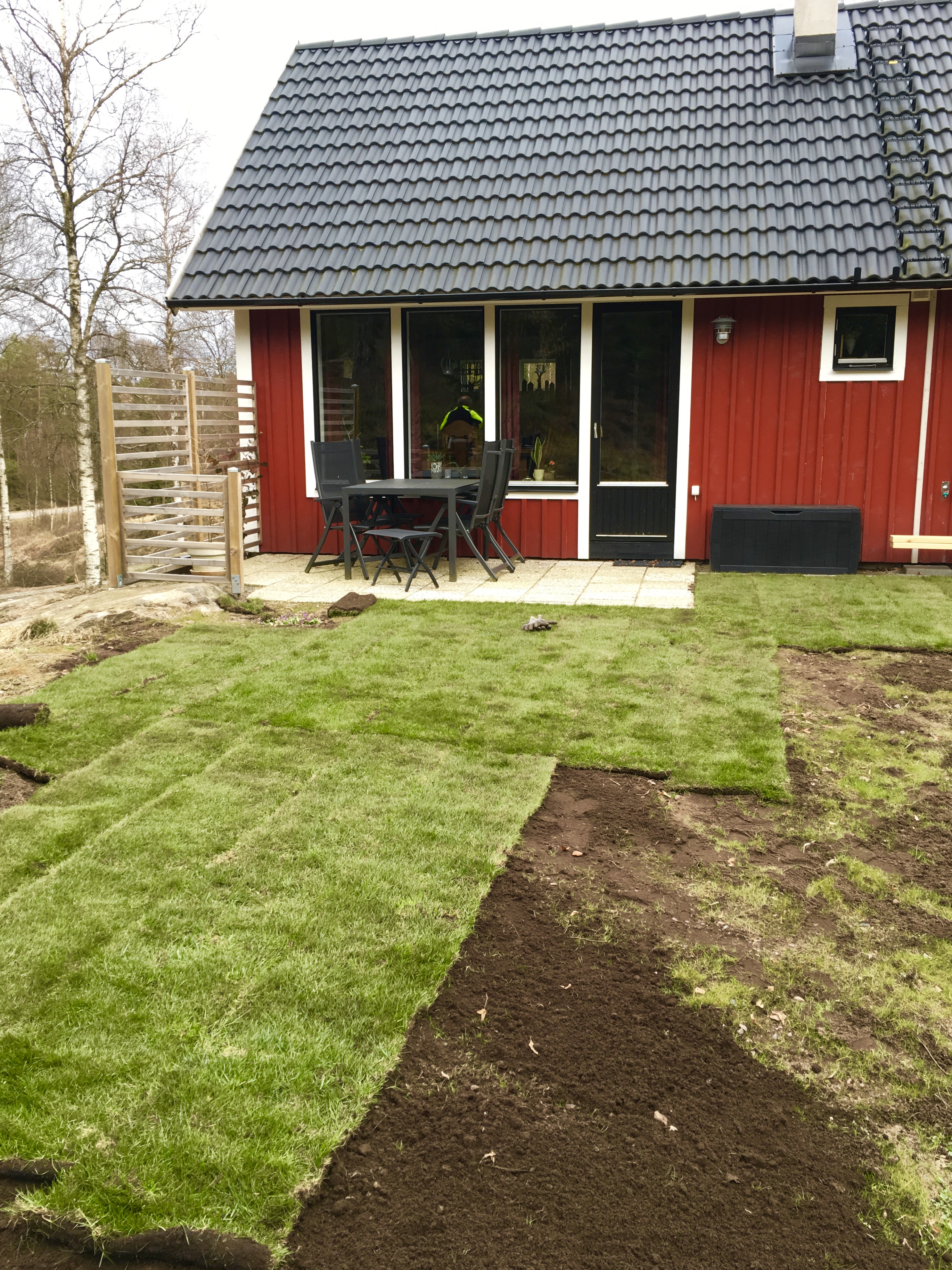 Vi vill visa er några gamla bilder från hur det såg ut på Slamrekullen när vi började hyra ut. Vad vi fixade med månaderna före vi hade våra första gäster. Ronny anlade en altan, byggde en spaljé, anlade gräsmatta och jag lade klinkers i badrummet och byggde en trägran som tänds varje jul! Det var mycket mer ”lull-lull” och ”pynt” i stugan på den tiden. Nu är det mer avskalat, men ändå ombonat och det är viktigt att allt som våra gäster behöver finns i stugan – till exempel en spinnrock…..🙄