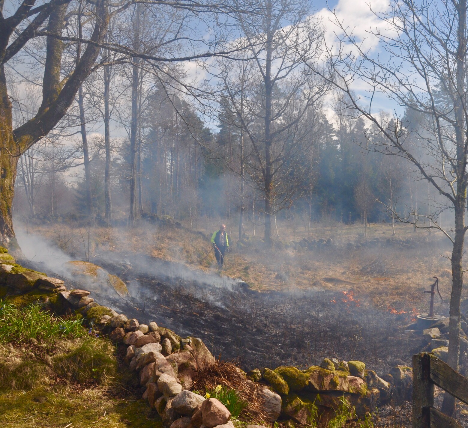 Visst märks det att våren är här. Det kvittras och bubblas och ”kvackas” (grodorna i dammen) och alla vill lunta! (Bränna bort gammalt torrt gräs). Idag hade jag ”röj” vid växthuset och det betyder att jag bara måste elda lite också. Jag fick bra fart i min egen ”eldkorg” (gjord av en gammal soptunna). Löv, kvistar och gammal mossa brann så fint. Över hela Slamrekullen osade det vår – precis som jag gjorde efteråt. Men det får man ta, det är en del av upplevelsen med att elda på våren – att man osar rök.