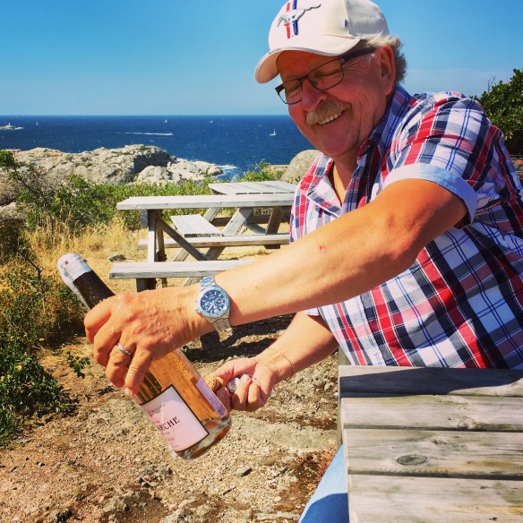Här korkar Ronny upp champagnen 🍾 på Marstrand (ett av våra favoritställen – i solsken). FÖR NU SKA VI FIRA – HELA SOMMAREN!! NEJ FÖRRESTEN – HELA ÅRET!!