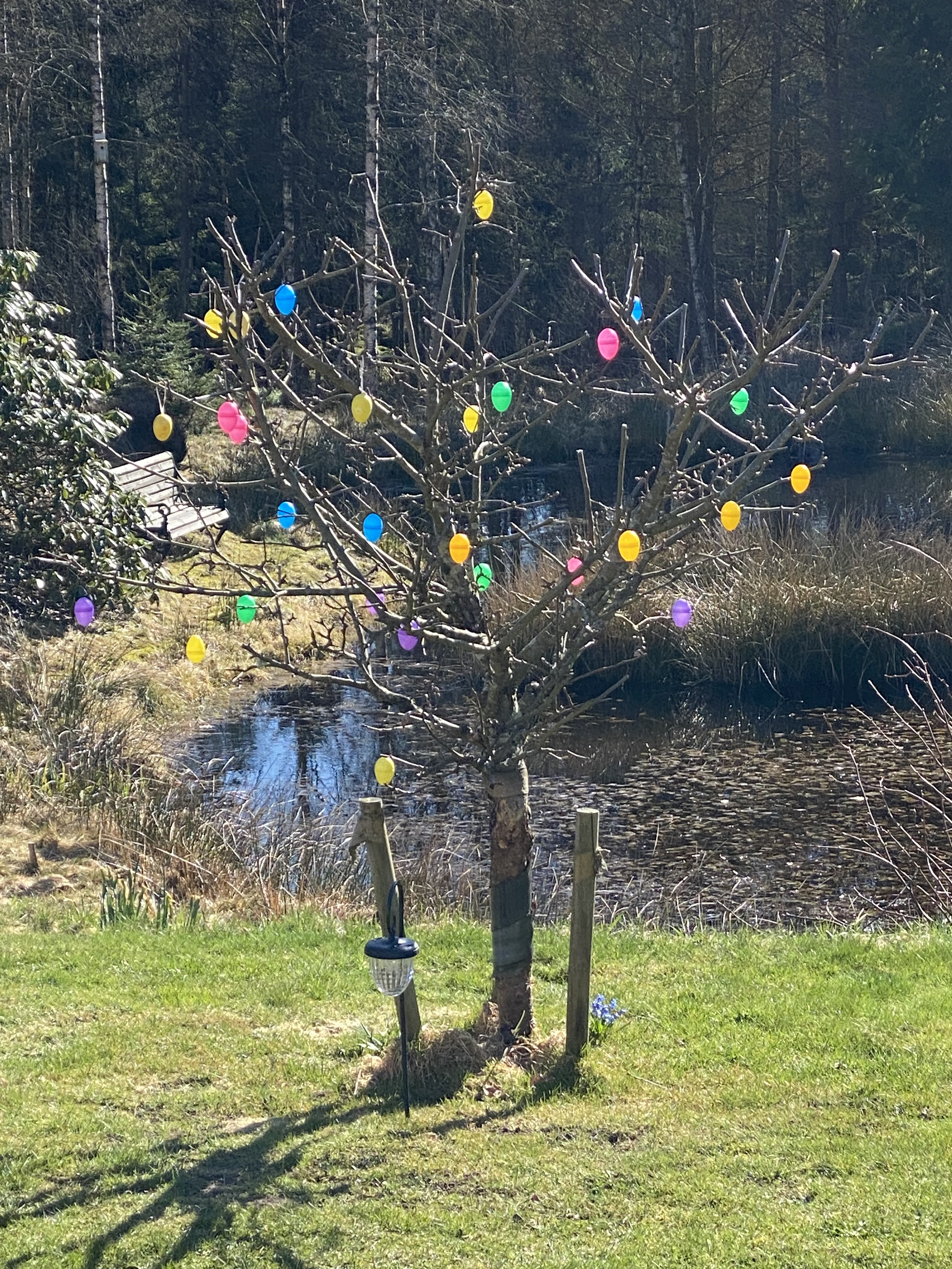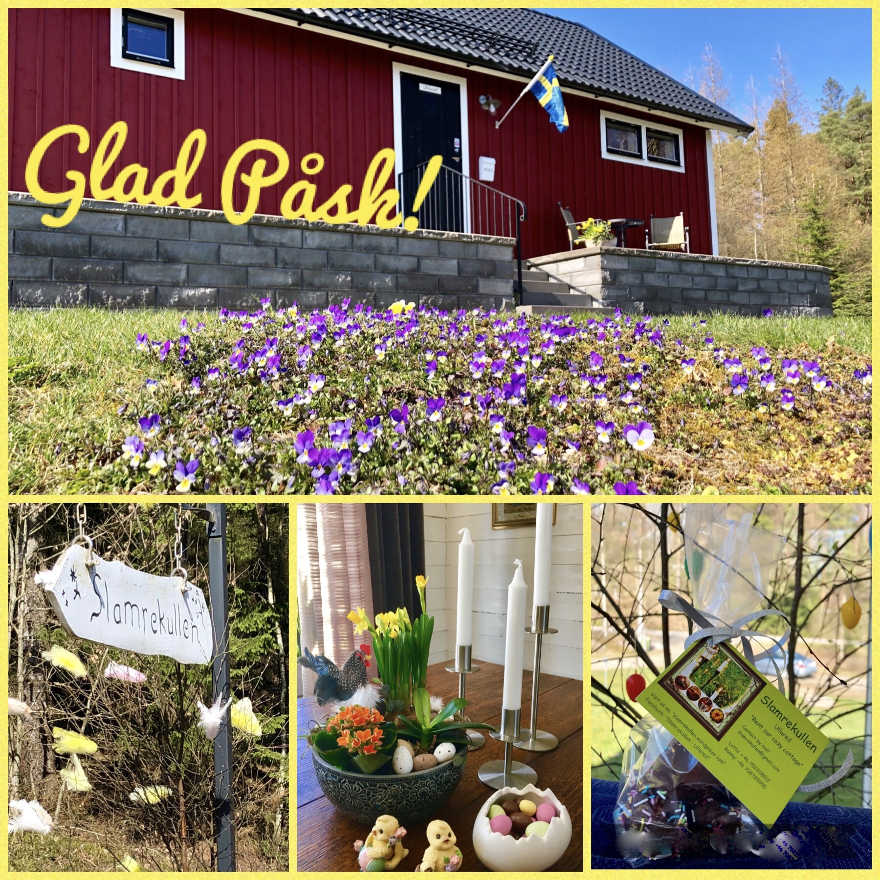 Påsken firar vi bäst här hemma på Slamrekullen! Vi har våra kära Annette och Kay i stugan. De ska vara hos oss i flera veckor och jobba på sin egen stuga som ligger i närheten. Idag på påskafton ska vi åka till Laxbutiken i Heberg med vänner och äta deras goda ”påskbuffé”. Vi hade hoppats kunna inviga vår nya gill i helgen, men vädret ser inte så gynnsamt ut – tyvärr.
