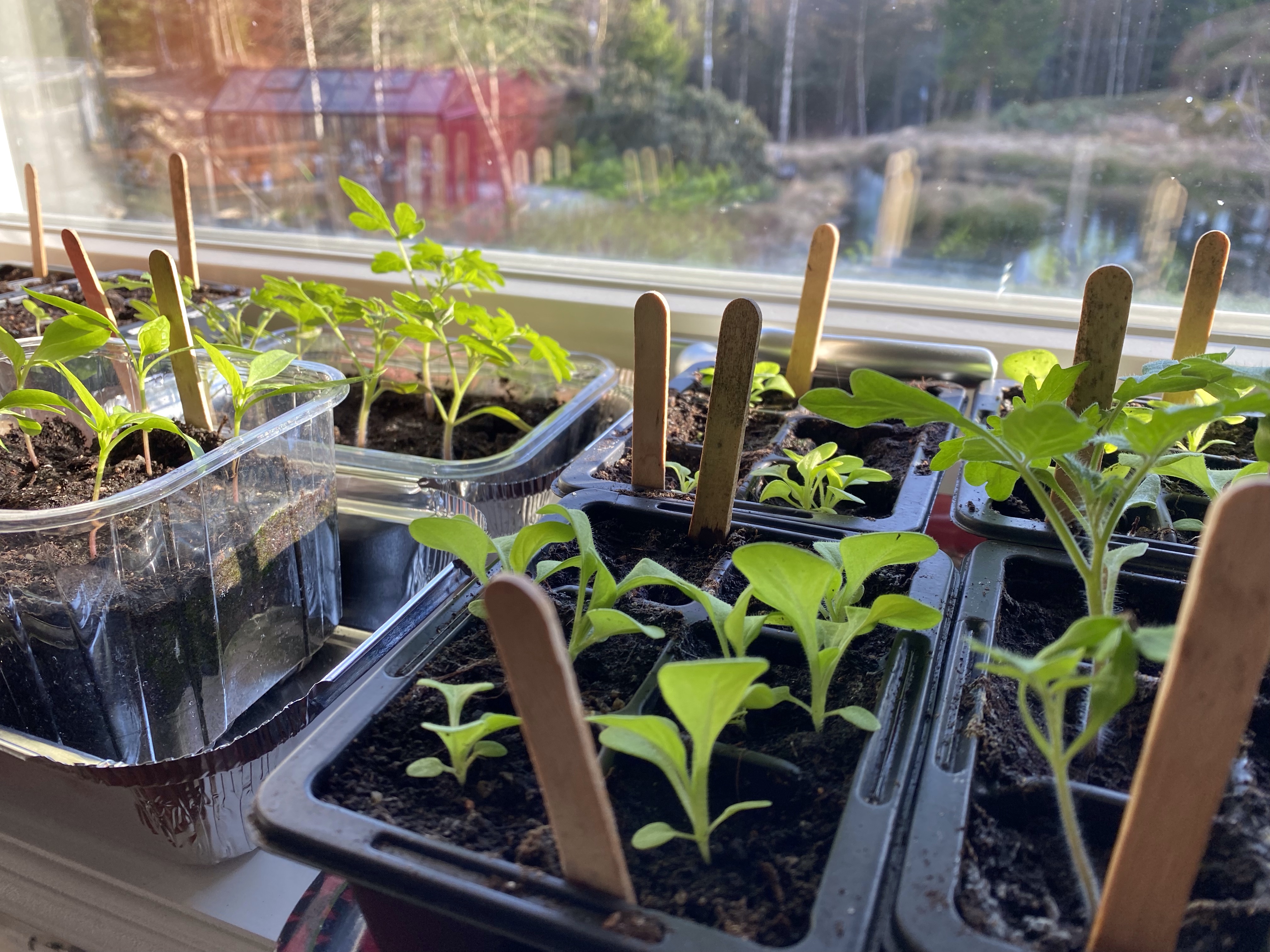 För några veckor sedan stådde jag några tomatfrö i så-jord. Vad är det för fel på den jorden? Jodå, fröna grodde och växte upp och såg så fina ut. Därefter förväntar jag mig att de växer på, och blir större och finare. Men det gör de inte! De vissnar ner och dör! Vet att detta hände även förra året och jag fick så om, men då i riktig näringsrik jord. Jag ska aldrig mer köpa så-jord! Idag har jag sått fler tomater – i tomatjord och petunior i blomjord. Hur svårt kan det vara? Det står ju på påsarna vad jorden ska användas till….. Jag såg en dam på tv!! Hon kunde odla hon! Jag fick ett fantastiskt bra tips av henne, när det gäller att så frön. Hon brukade först lägga näringsrik jord i botten, sedan så-jorden ovanpå! Fröet gror i så-jorden, när rötterna utvecklas och kommer längre ner i krukan möter de – (just det) den mumsiga, näringsrika odlarjorden!! Så gissa vem som har sått om flera av tomatfröna nu???