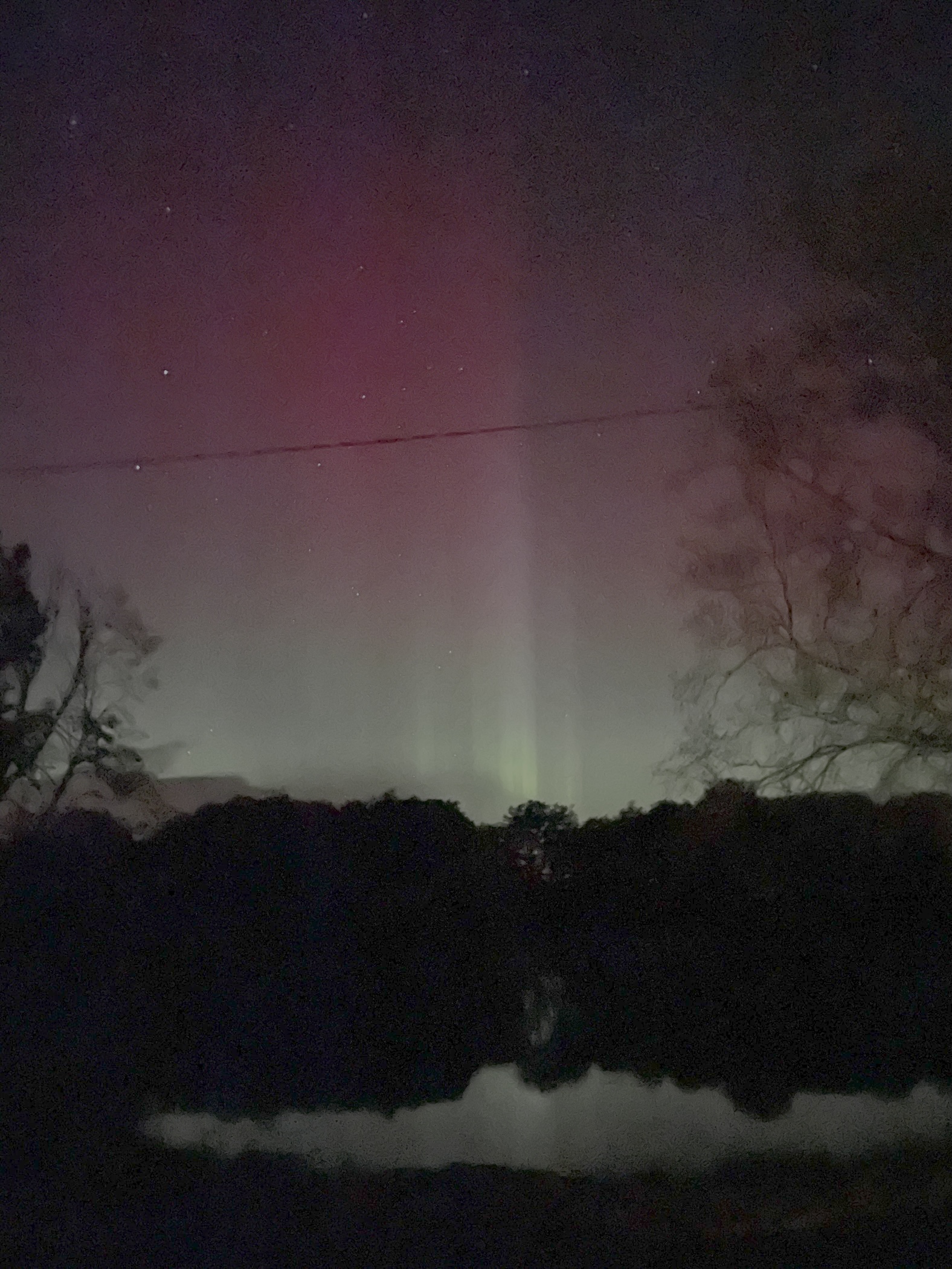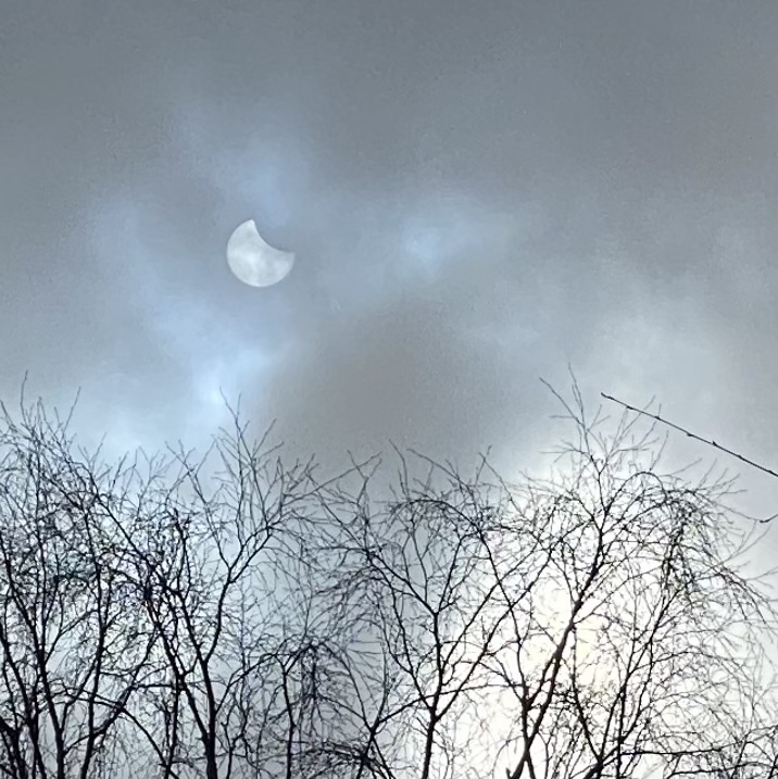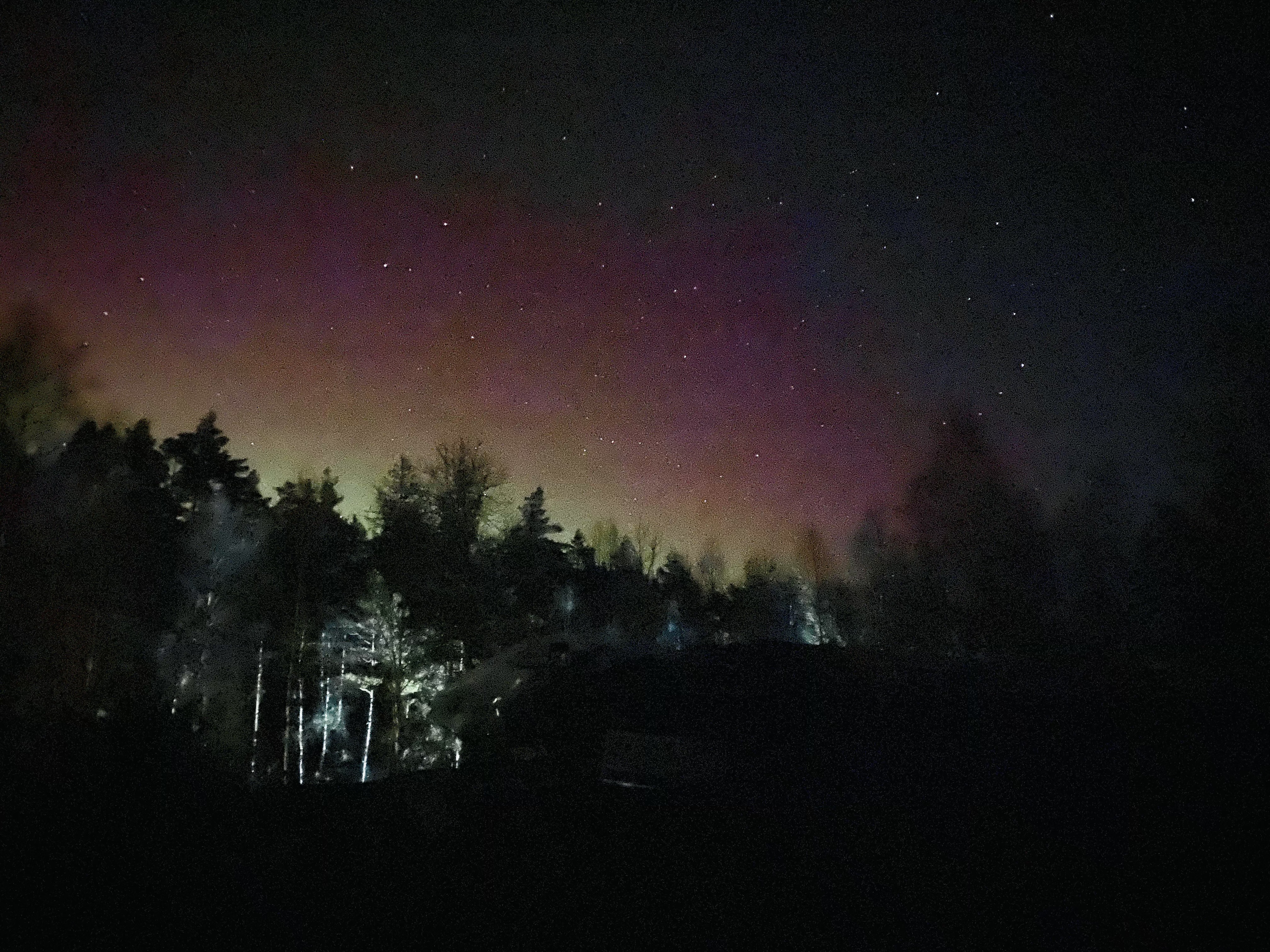 Idag var det en (delvis) solförmörkelse. Jag försökte hitta något att blända av solen med, men hittade inget. Plötsligt drog det in tunna moln framför solen, då syntes det tydligt att månen blockerade solen litegrann. Men jag tycker att det är mer spännande med norrsken. För några kvällar sedan, fick jag ett meddelande från min granne. ”DET ÄR NORRSKEN NU!” Jag hade precis krupit ner i sängen med min bok. Upp, på med jacka, skor, var är mobilen? Jodå, jag fick lite bilder på norrskenet också. Tyvärr har vi ganska mycket skog som skymmer sikten mot norr, men man kan ändå se det ganska bra. (Det är en bil som kommer på vägen och lyser upp träden lite mystiskt….)