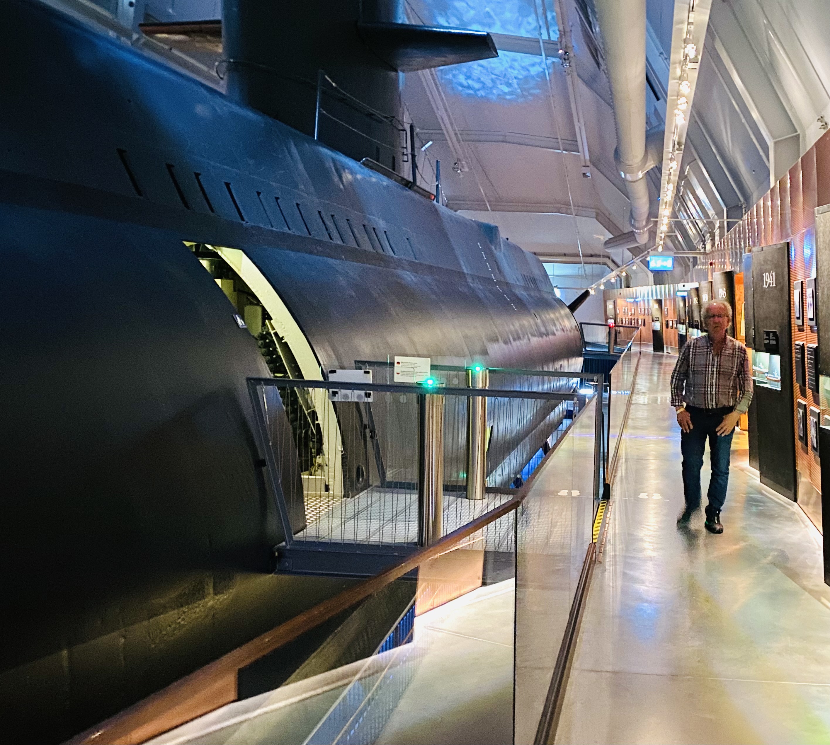Vi gick på marinmuseum, det tog två timmar att se allt. Spännande! Vi gick in i den stora u-båten (Neptun). 50 meter lång, man trodde ju att den skulle vara stor och rymlig inuti också, men det var den inte! Usch! Skulle aldrig klara av att åka instängd i den under vatten. Jag hade bråttom att komma ut nu också ska jag säga. Det stod folk i vägen och skulle glo på alla små mojänger, knappar och periskop – flytta er! Jag måste ut!