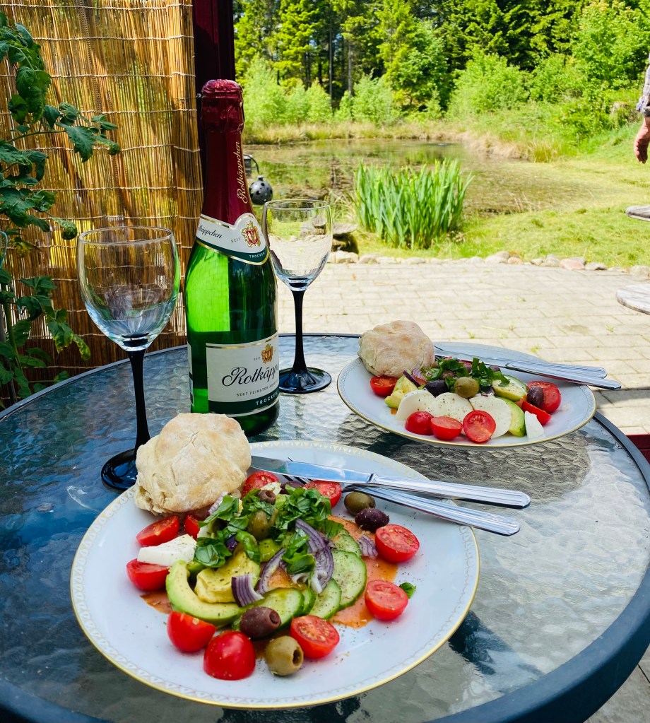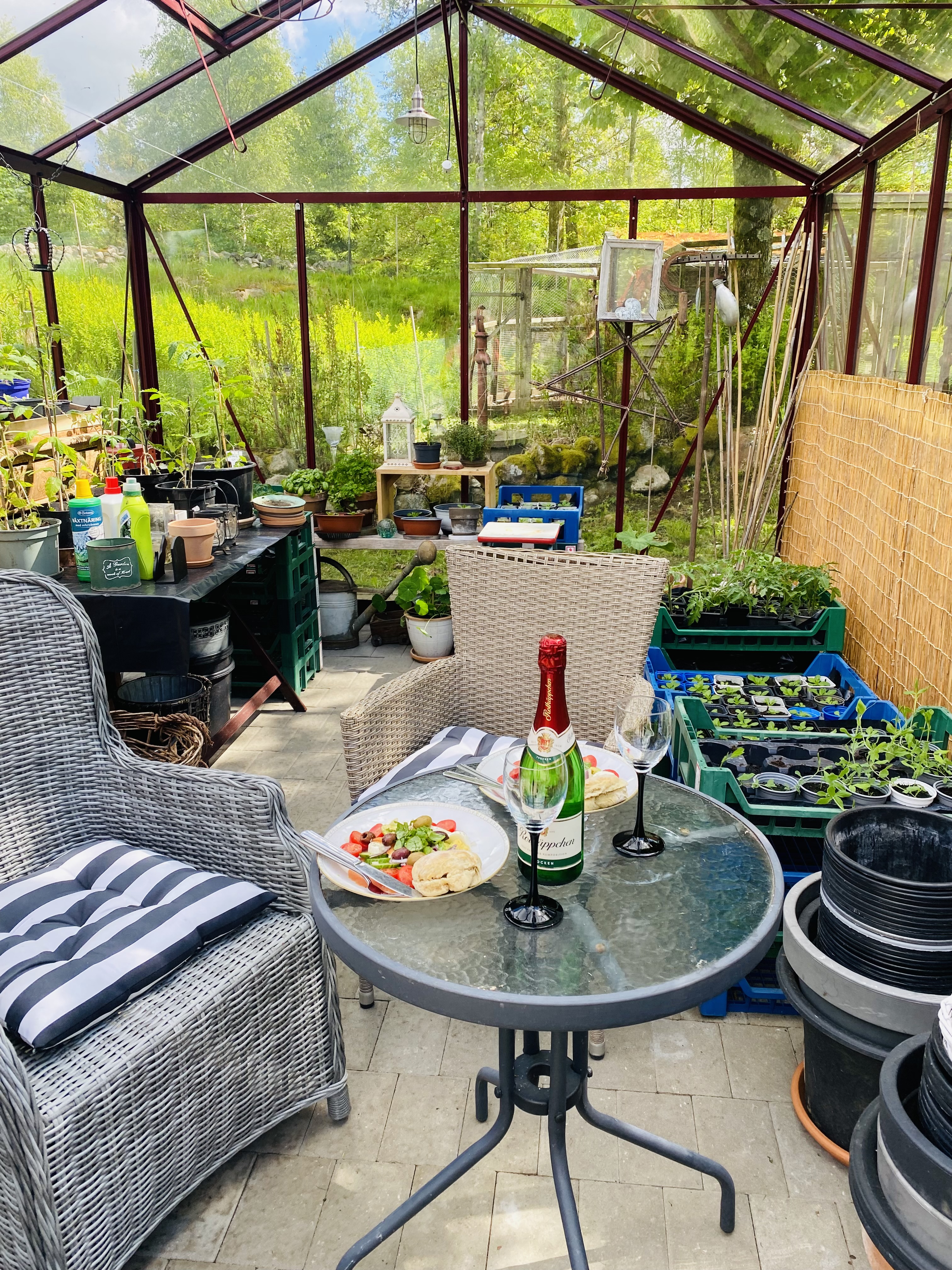 Äntligen är det sommar. Det surrar och kvittrar, hoppar och prasslar över allt. I helgen har vi fixat och städat både inne i växthuset och utanför. Vi är redo för sommarens grillkvällar, bubbel-mys och kaffestunder. Efter några timmars hårt arbete, var vi värda en sommarsallad med härlig, kall och bubblande tysk 🇩🇪 🥂champagne!