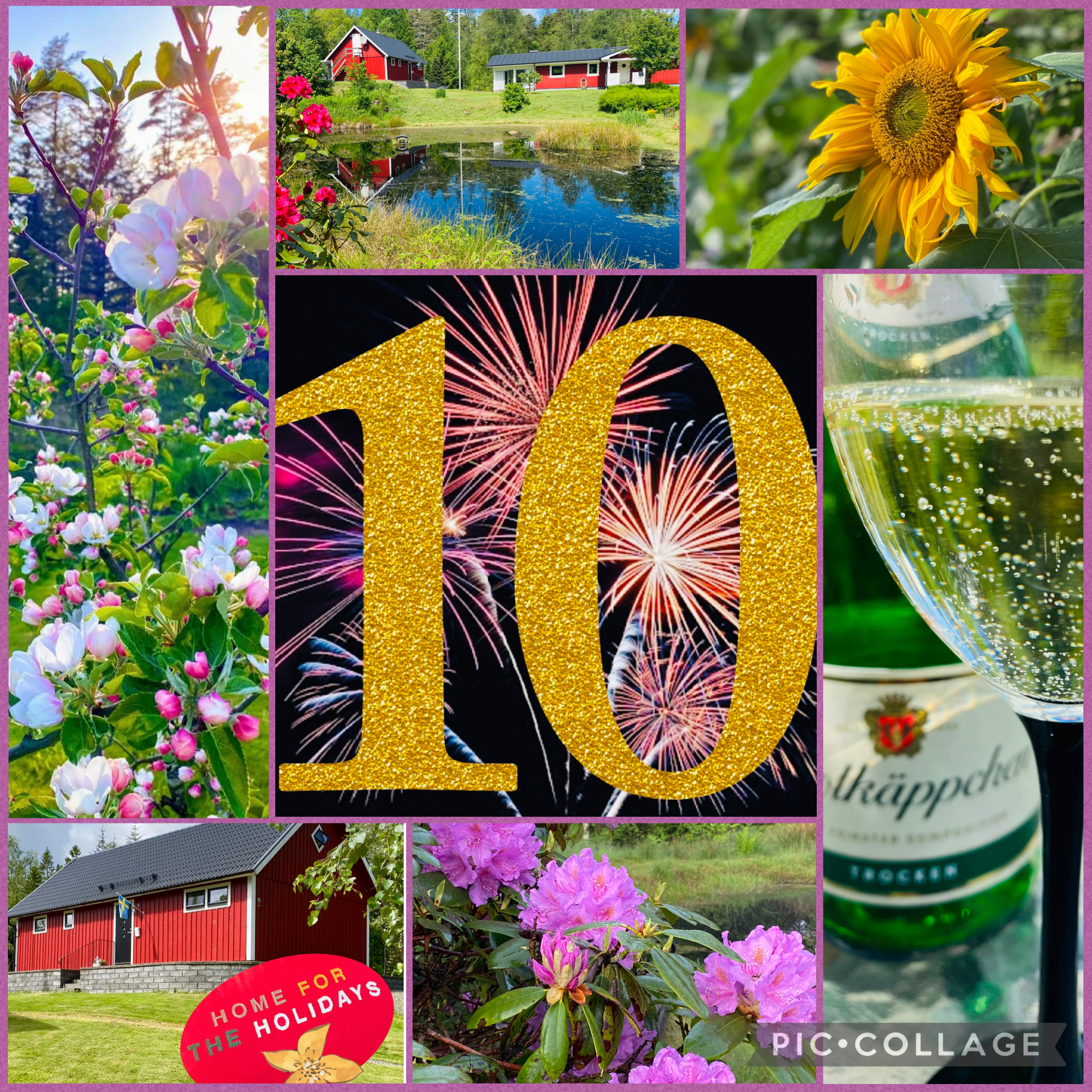 Det var midsommarhelgen för 10 år sedan som vi hade våra första gäster i stugan. De var från Holland. Vi var så spända på vad de skulle tycka. Om vår stuga skulle vara tillräcklig och ha de bekvämligheter som gäster önskade. Undan för undan gjorde vi förbättringar. I början hade vi ingen frys, ingen altan på baksidan, där var bara jord och ogräs, ingen grill osv. Tänk så många gäster som bott hos oss under dessa tio år, så många härliga gäster och de flesta har denna flagga 🇩🇪