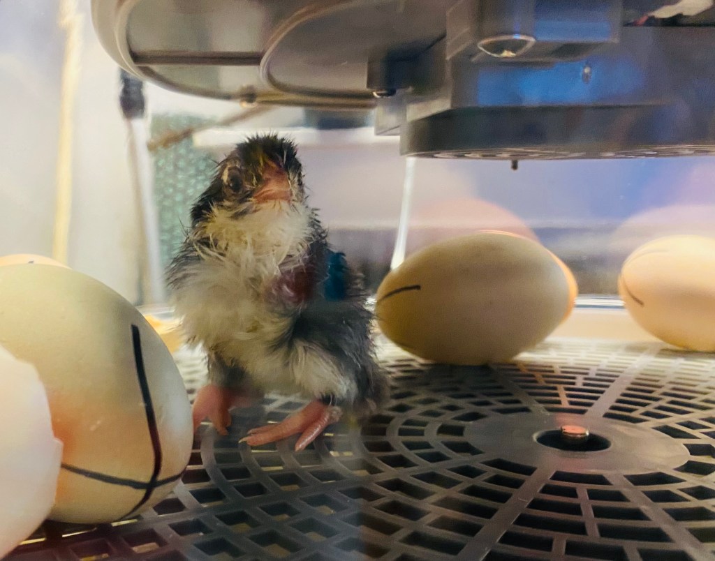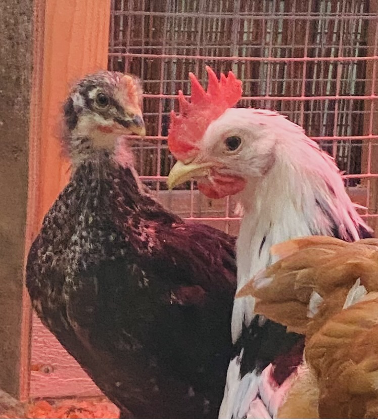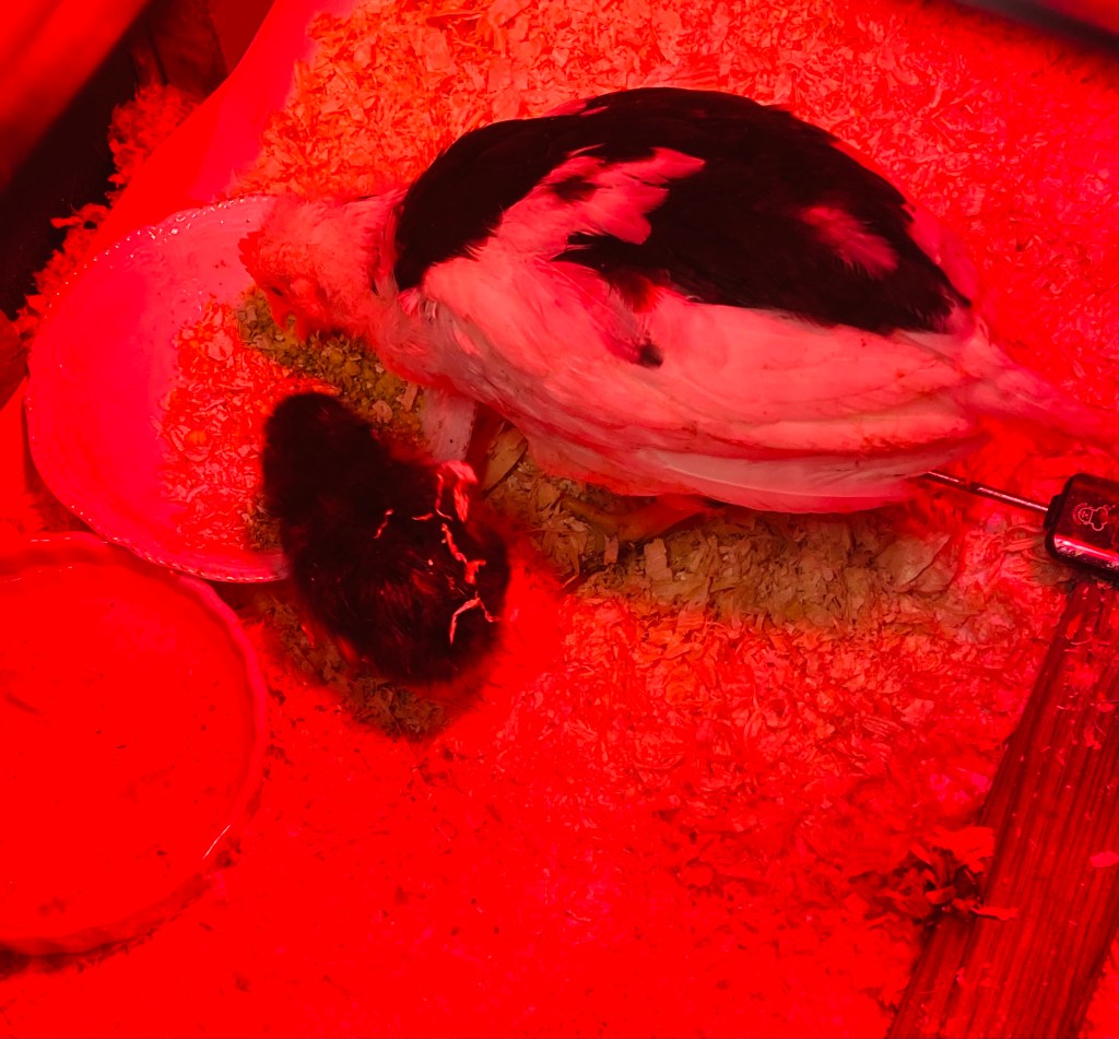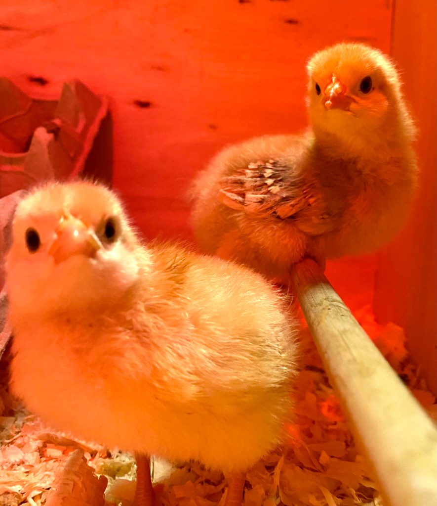 Dessutom har vi ju våra små, söta kycklingar att ta hand om. De måste ha värmelampa, så de fryser inte heller. Ca, 30 grader ska de ha, annars fryser de.