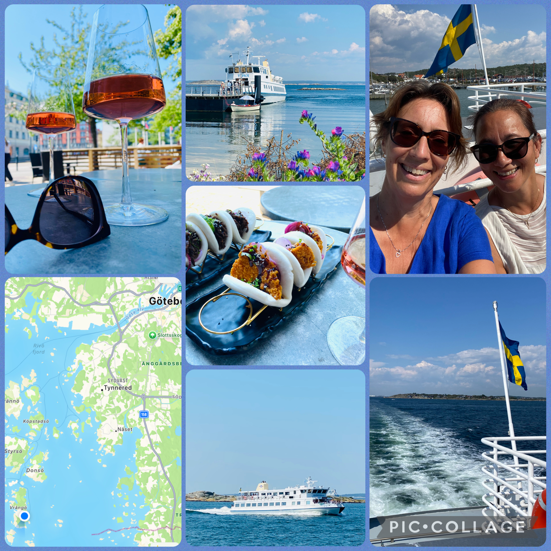 Hej på er! Här sitter jag i värmen (32° C) och skriver en blogg. Fastnade på min skärmbild av domherrar i snöfall. Det kändes lite uppfriskande och svalt för en stund. De turister som åkt till Sverige för en lite svalare semester, har valt helt fel vecka! Vi har i flera dagar haft över 30 grader och strålande sol. Varmt och skönt, eller? Jo, om man bara sitter i skuggan och dricker kalla drycker, så kan det väl vara ok. Jag och min väninna, hade planerat en trip till Göteborg i går, det var osmart! Att gå omkring på gatorna i Göteborg gjorde oss totalt utmattade, svettiga och yra. Efter ett glas rosé och min favorit – boa buns, tog spårvagnen till Saltholmen (dit kan man även åka med bil), tog en skärgårdsfärja och åkte till Vrångö. Det blev en härligt tur med friska vindar och en härlig glass.