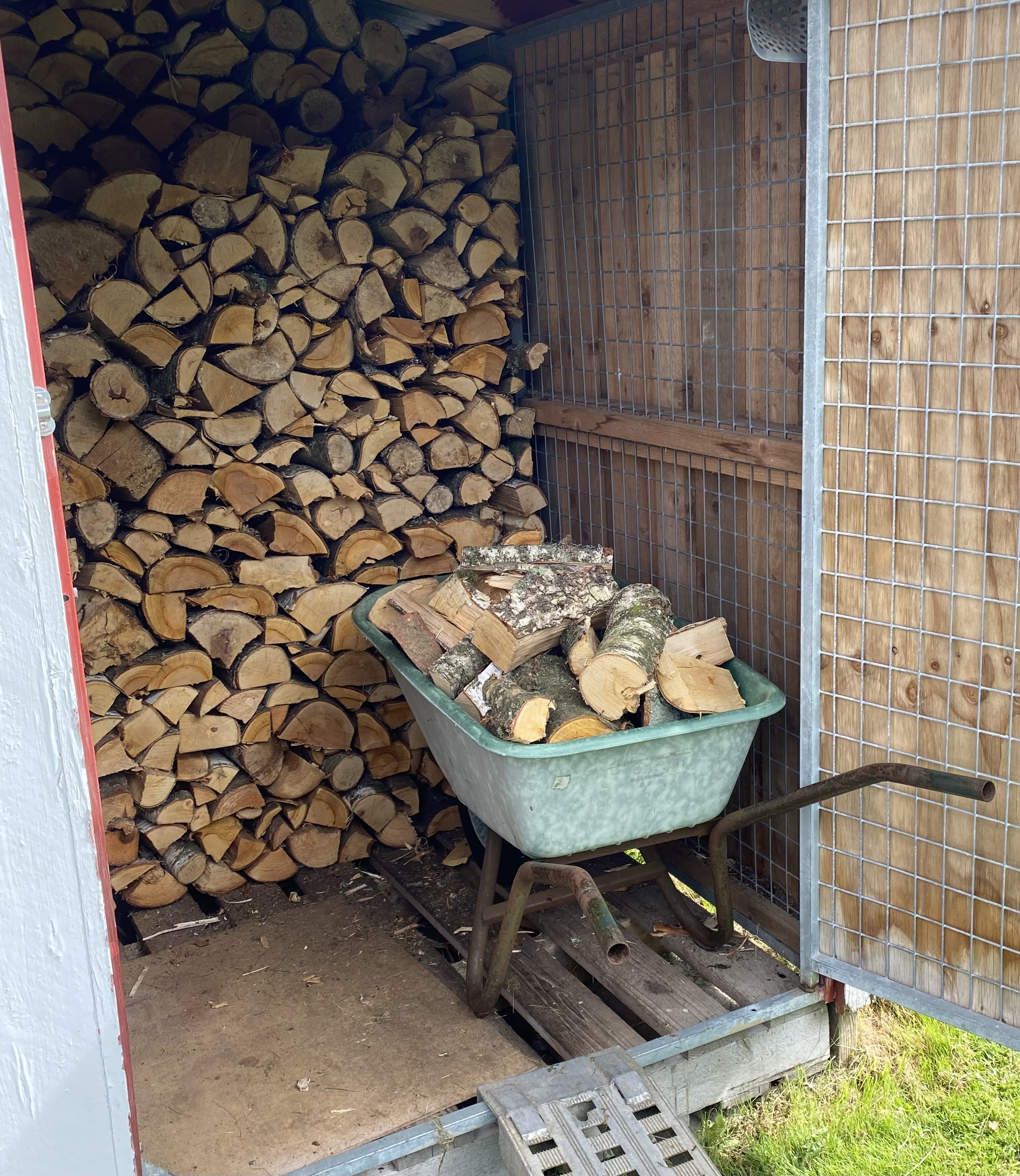 Vi laddar för höst och höstbrasor. Det är kyligt på morgonen, då är det mysigt att tända en liten ”morgonbrasa”. Ronny har laddat med ved i förrådet och vi har prov-tänt kaminen i uthuset. Ibland blir det rökutveckling när det inte har eldats på länge i den. Men det blev det inte i går, den funkar som den ska.