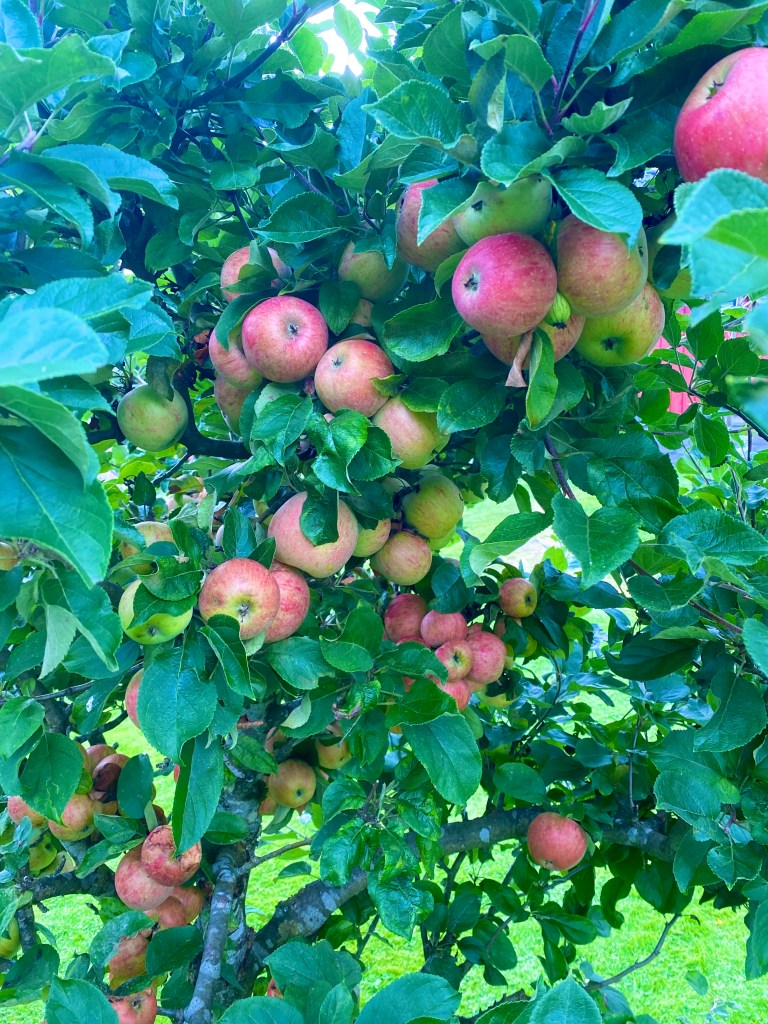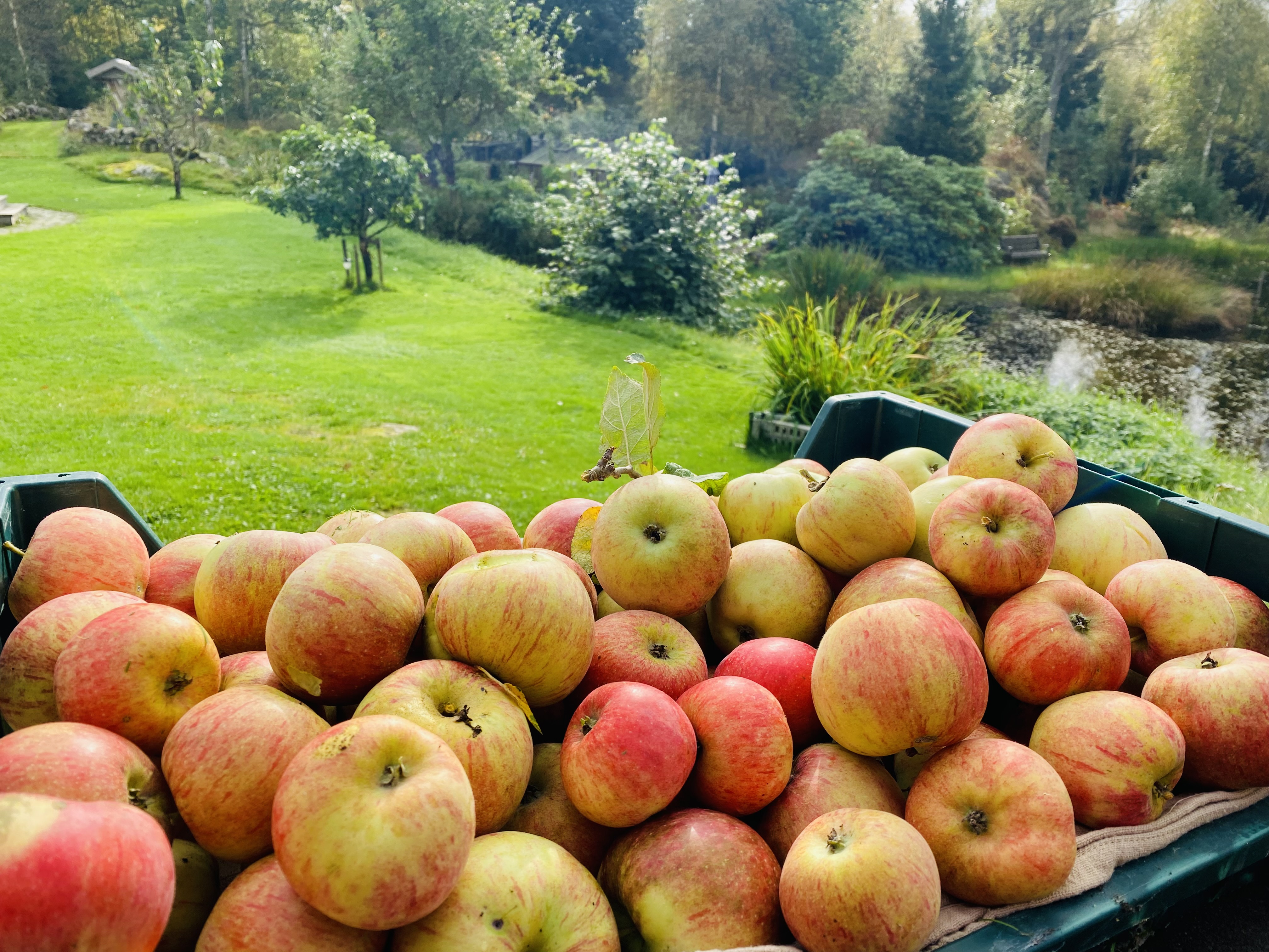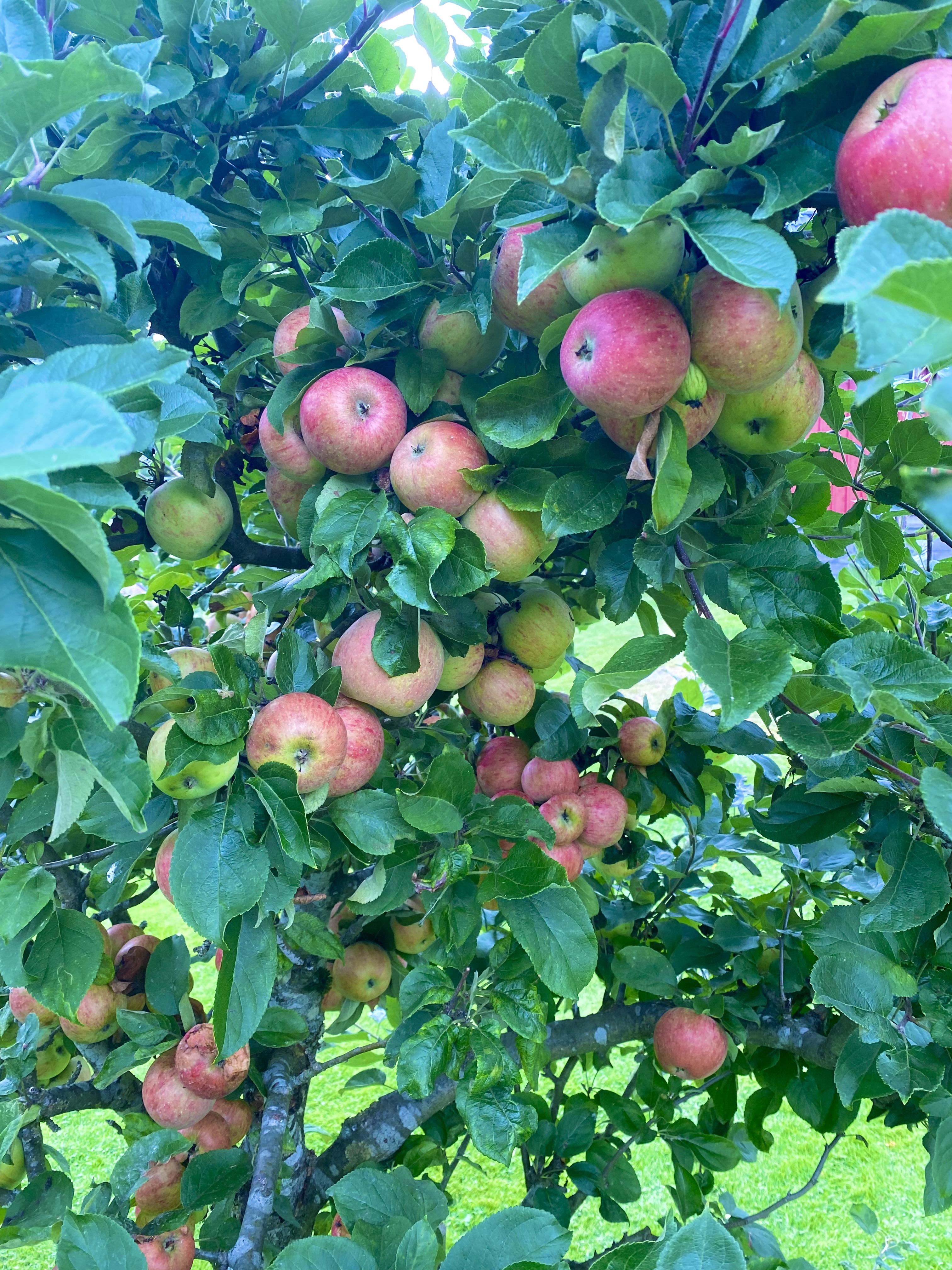I år har det varit mycket svamp, tomater och äpplen. Hela vårt lilla äppelträd har varit fullt med äpplen – Aroma! De är så goda. Nu blir det massor av små påsar med äpplen i frysen (perfekt att ta upp och göra äppelpaj av hela hösten!) Det har också varit (och är) rikligt med svamp i skogen. Snart kommer alla höstmarknader igång (oktober) det är full fart mot oktober och fest!