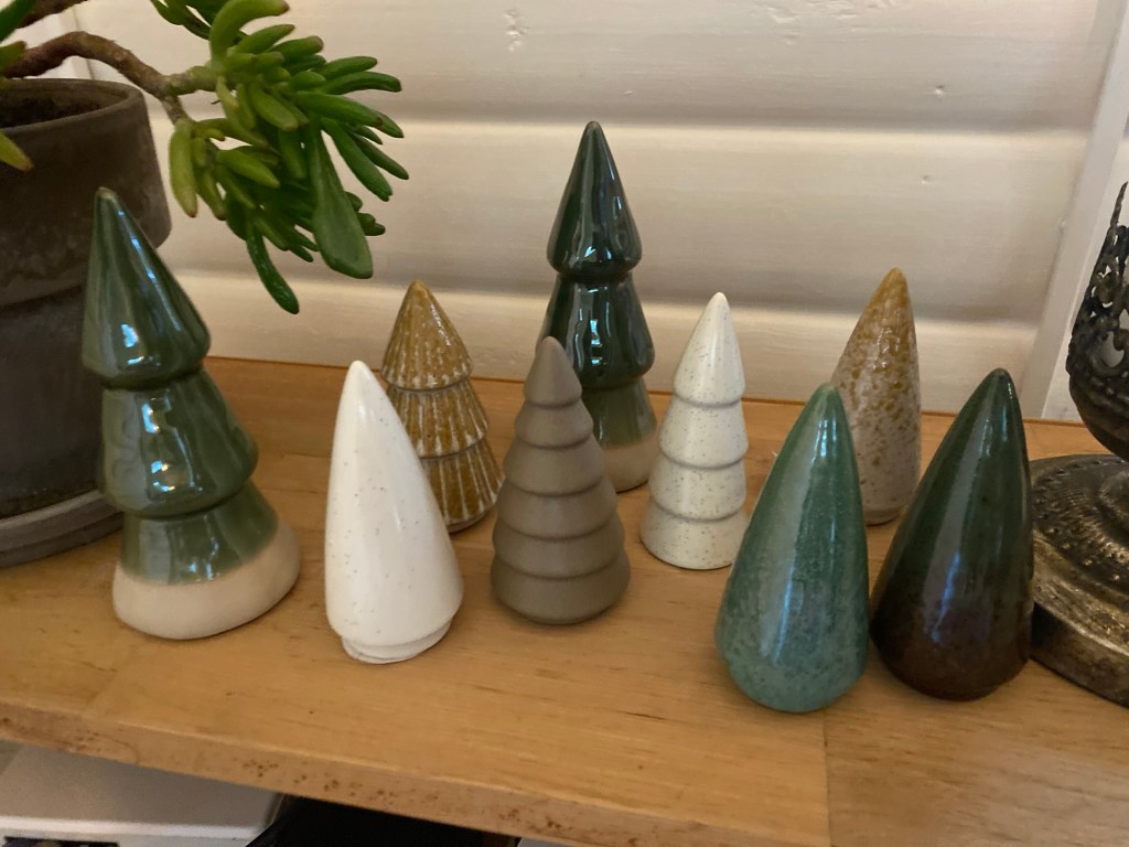 Det är verkligen shoppingtider på vår ”lilla” närbutik (Gekås). I går när jag körde förbi var det fullt på alla extra parkeringsplatser i hela Ullared! På min väg in mot Falkenberg, mötte jag en lång karavan av bilar som skulle dit. Jag ska dit i morgon, kl 8.00 en måndagsmorgon är perfekt. Då har man svängrum. Förra året köpte jag dessa granar i keramik, de tog snabbt slut, så i år har jag redan köpt på mig ett lager. De är superfina att sätta bredvid tomtar eller i ett jullandskap.