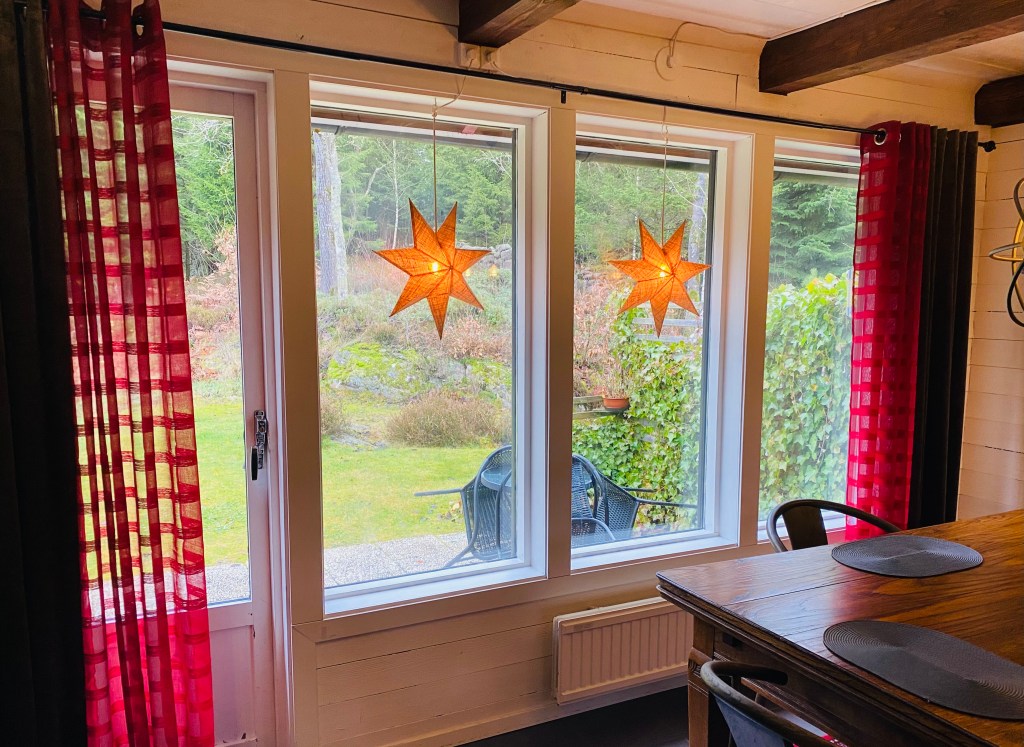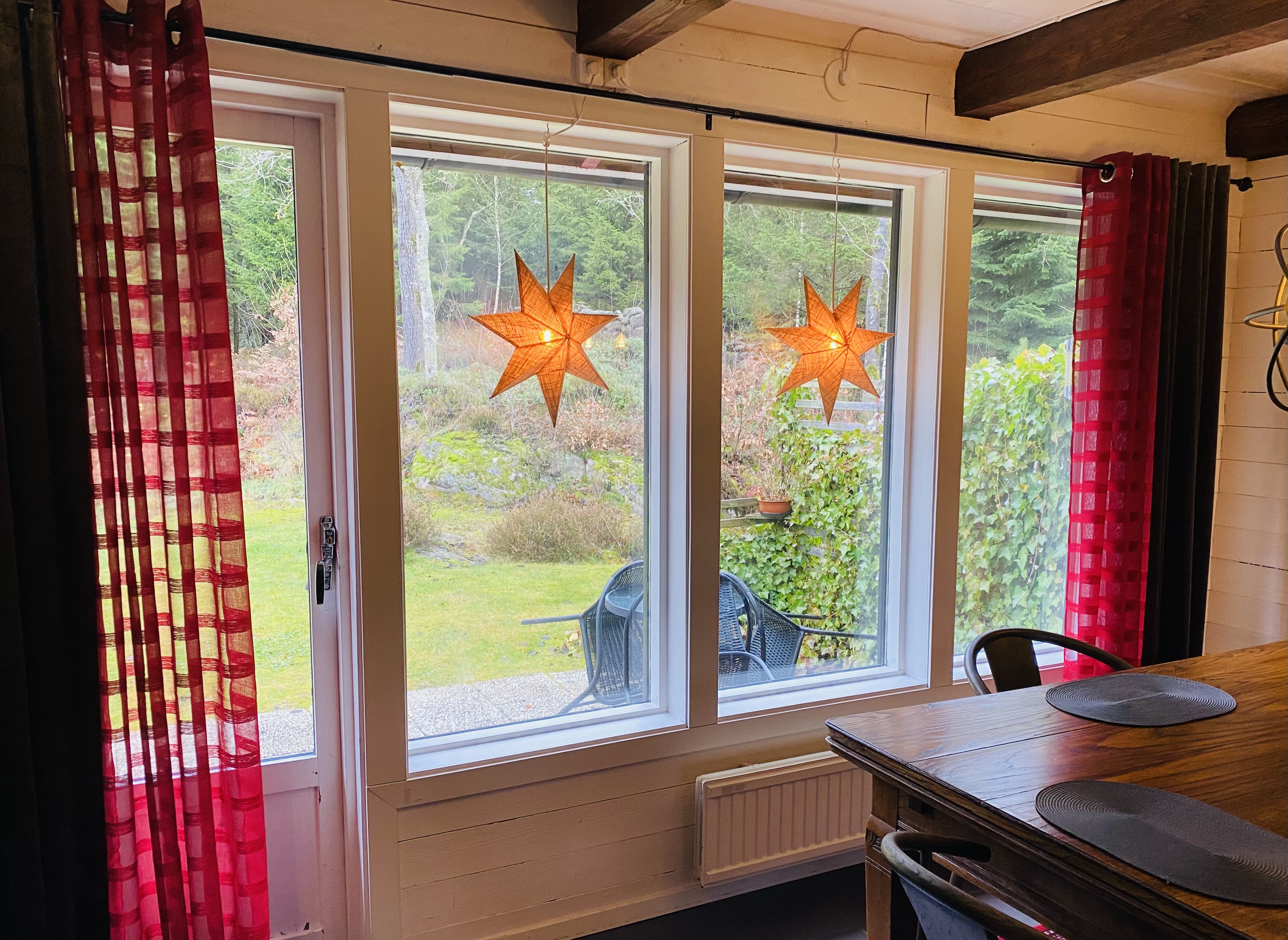 Jag vill inte börja julpynta för tidigt. Den rätta stämningen måste infinna sig och det gör det inte om man börjar flera veckor för tidigt, men man kan ju förbereda…. Jag förberedde lite i stugan idag. Till helgen kommer gäster till oss som ska stanna i två veckor, och då hinner det bli första advent. Så klart måste de få ha det lite juligt i stugan. Därför blev det lite julförberedelser idag med fönstertvätt, julgardiner och stjärnor. Till och med brädgranen fick sina ljus.