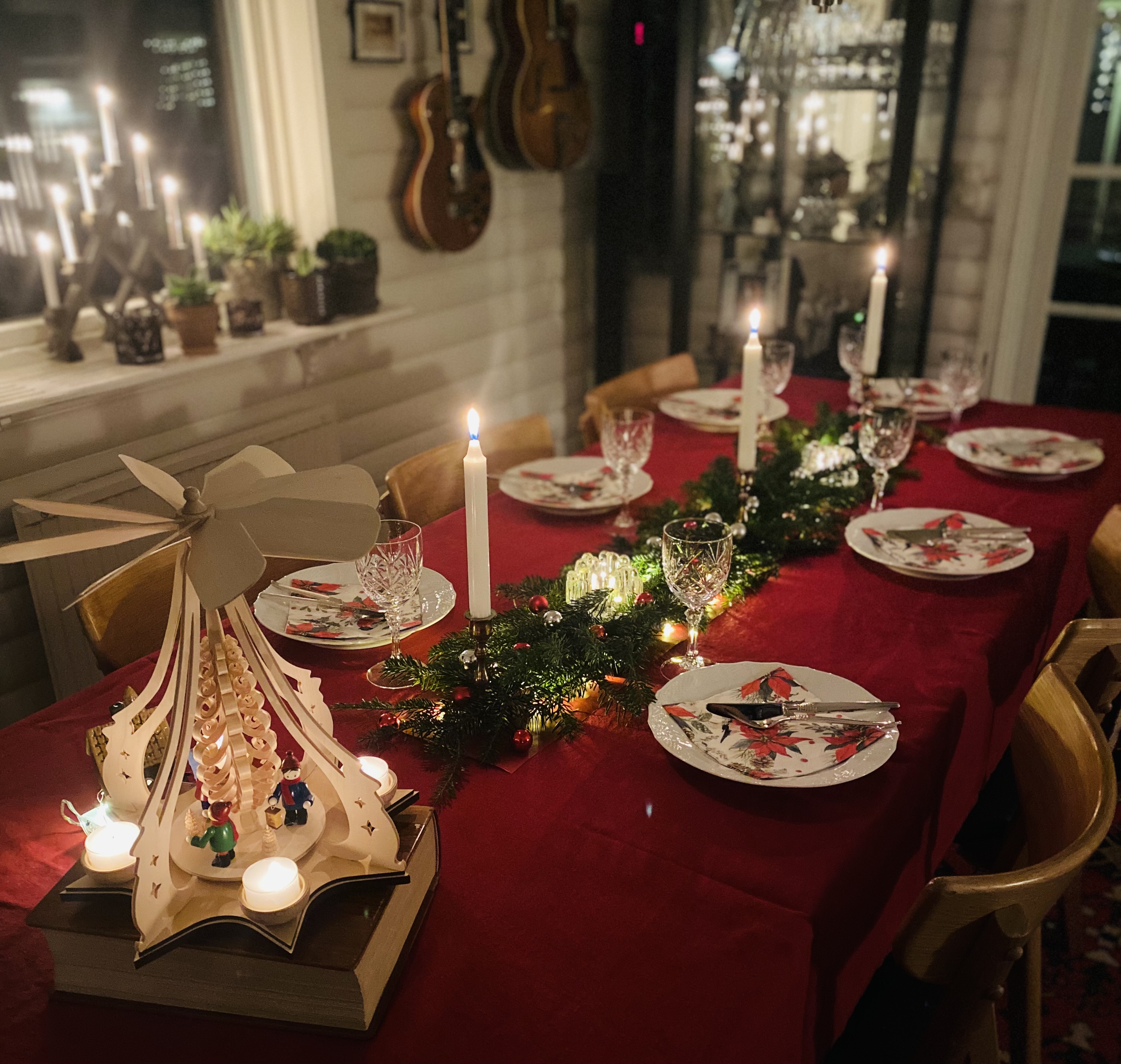 I fredags hade vi AW med våra kära grannar. På bordet stod vår finaste julmobil – och snurrade. Den står och lyser och snurrar och sprider så mysig stämning vid julbordet. Jag älskar den!