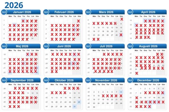 Här ser ni våra bokningskalendrar för 2026 och 2027.