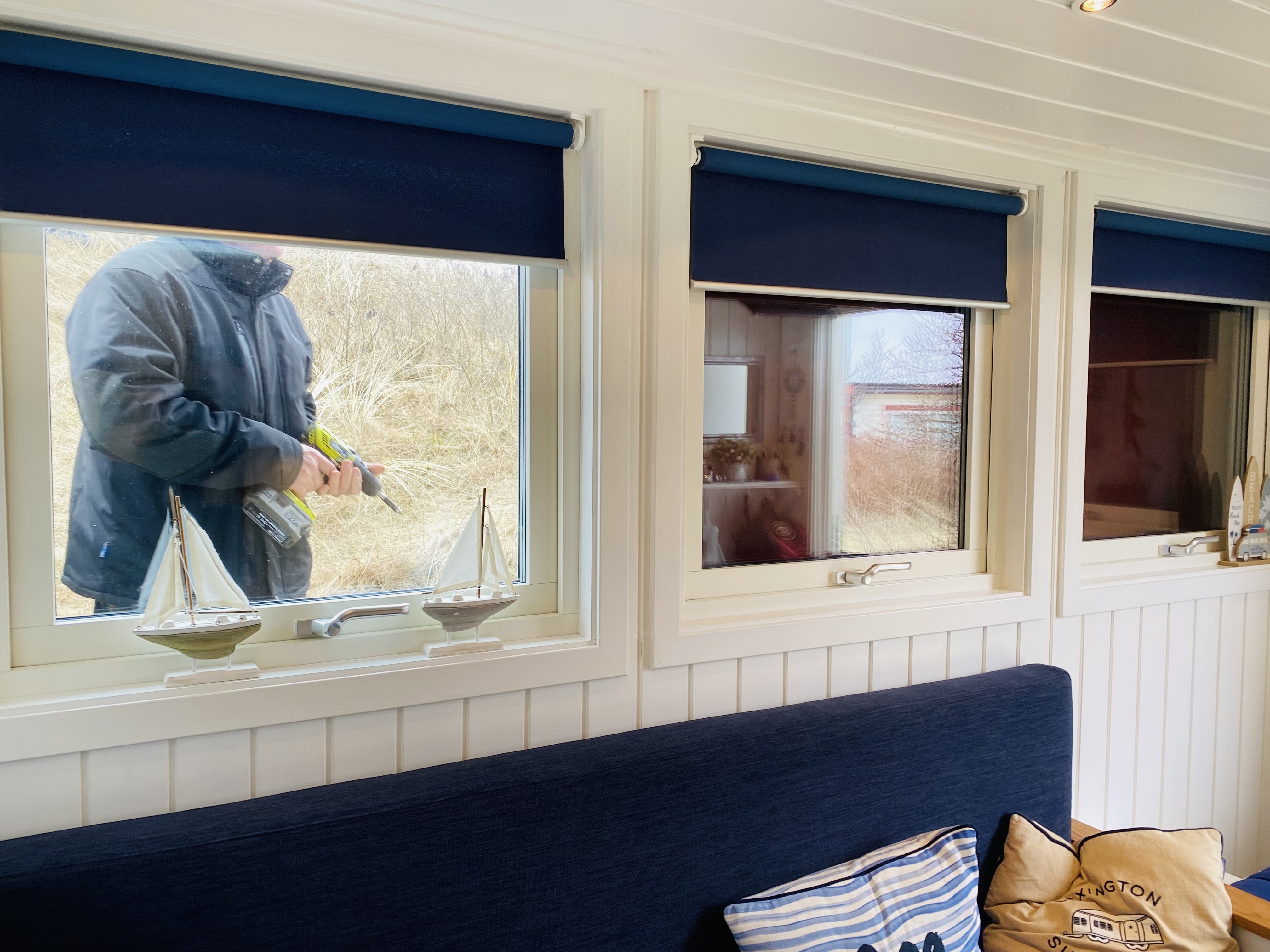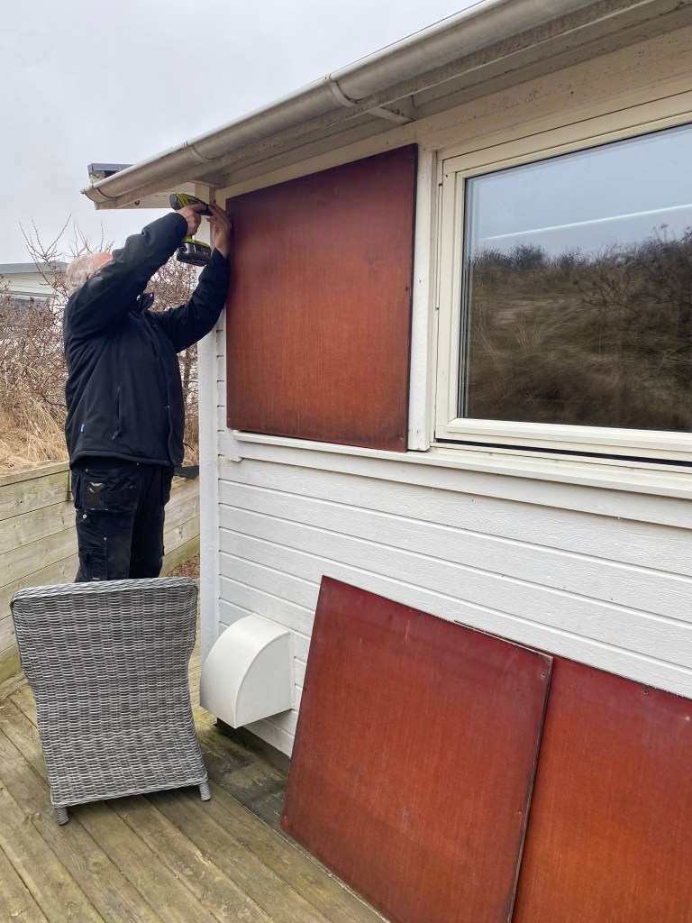 Det ultimata vårtecknet! Varje år! Är när Ronny skruvar bort träluckorna som skyddar fönstren på min strandstuga på Skrea strand. Det är lika underbart varje år. NU – Ligger allt framför oss. Härliga dagar på stranden med sol, bad och salta bad.