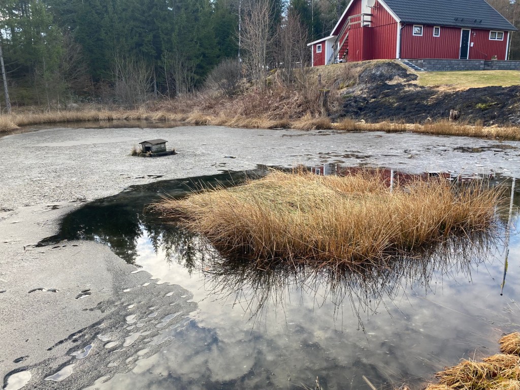 Vi laddar för påsk! Det är kanske lite tidigt att pynta redan nu, men idag var det så soligt och fint. Jag kunde inte låta bli att pynta vårt ”påsk-träd”. En härlig vårdag med 15 grader! Som vi längtat. MEN, vi har fortfarande 10 cm tjock i i dammen! Den smälter på dagarna, men inte på nätterna, då vi fortfarande har minusgrader nästan varje natt.