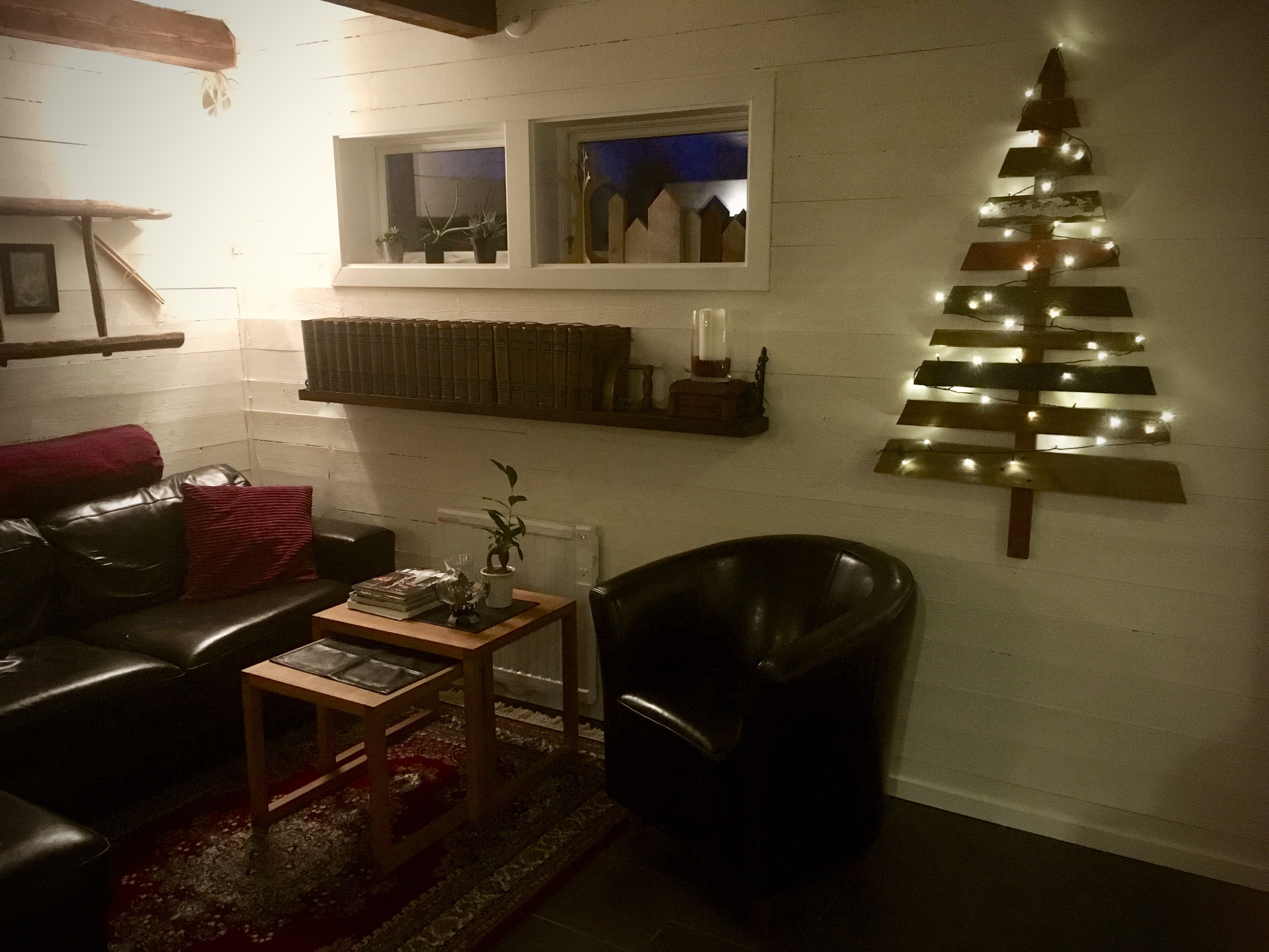 Today I made the cottage ready for shopping guests coming tomorrow, I just have to hang up the shining star on the loft….and some lights in the wall-fir.
