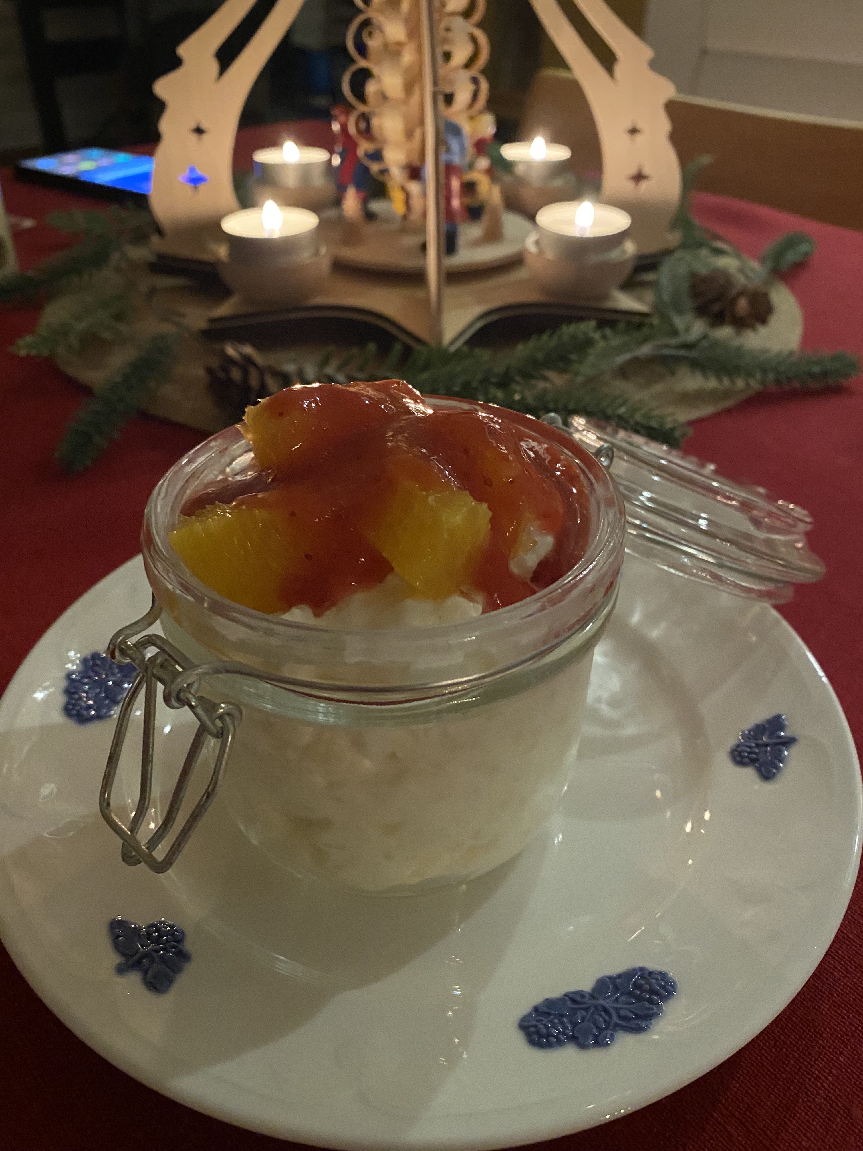 Mycket mat blir det till jul! Det är så det ska vara. Till jul ska alla få äta sig mätta – det är tradition sedan det gamla bondesamhället. I flera veckor förbereddes julen. Än idag vet man att på ”Annadagen” (när Anna har namnsdag den 9,e December ska lutfisken läggas i blöt). Allt står i den gamla ”bondepraktikan”. Inte mycket av det som stämmer idag, men maten, den finns kvar. Om man inte skulle blivit mätt av all mat på julbordet, så gör man det garanterat av efterrätten – Ris a la Malta! Risgrynsgröt med grädde (i lika mängd) och lite vaniljsocker och florsocker, toppat med mandariner och en sås på mixade jordgubbar.