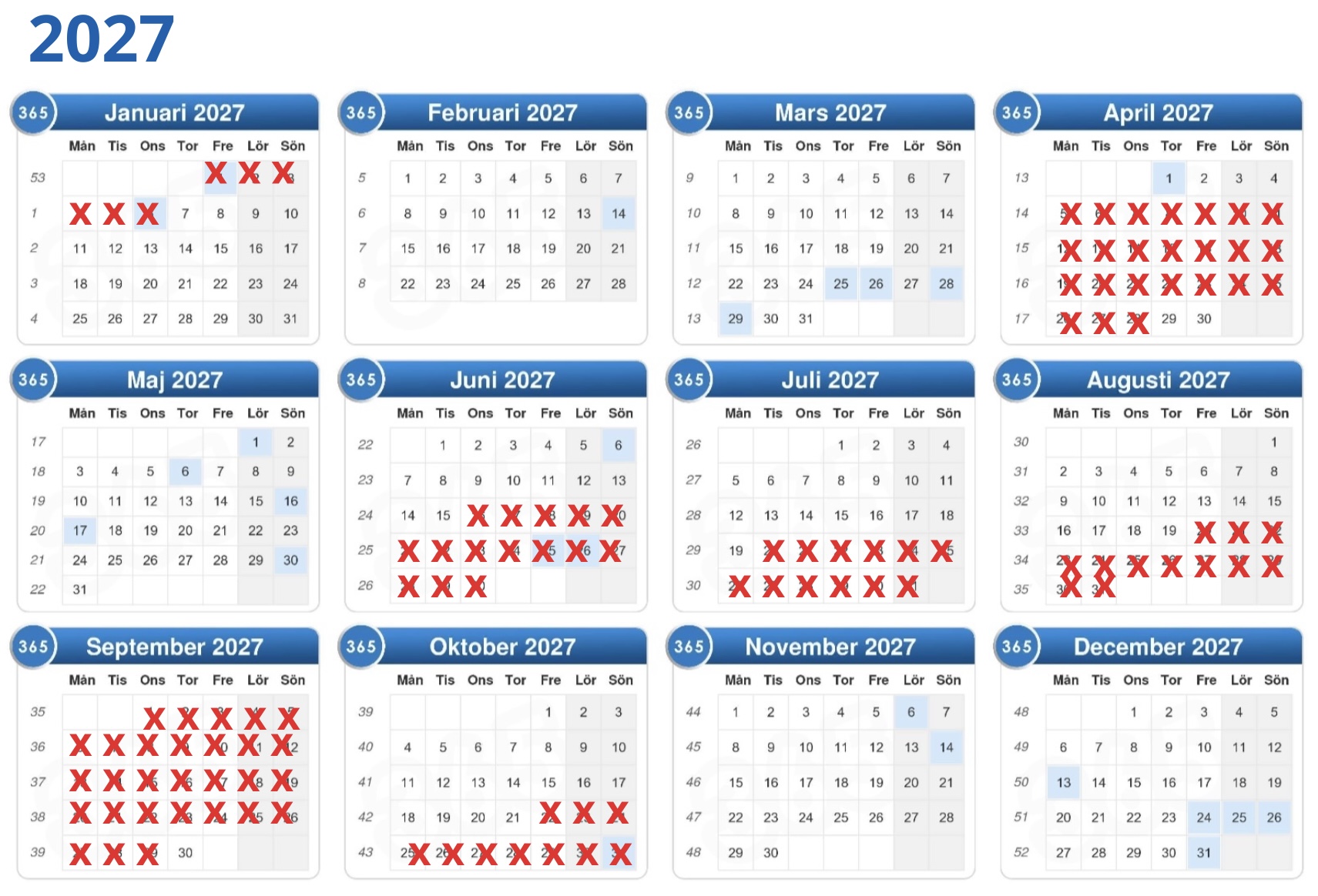 Här ser ni våra bokningskalendrar för 2026 och 2027.