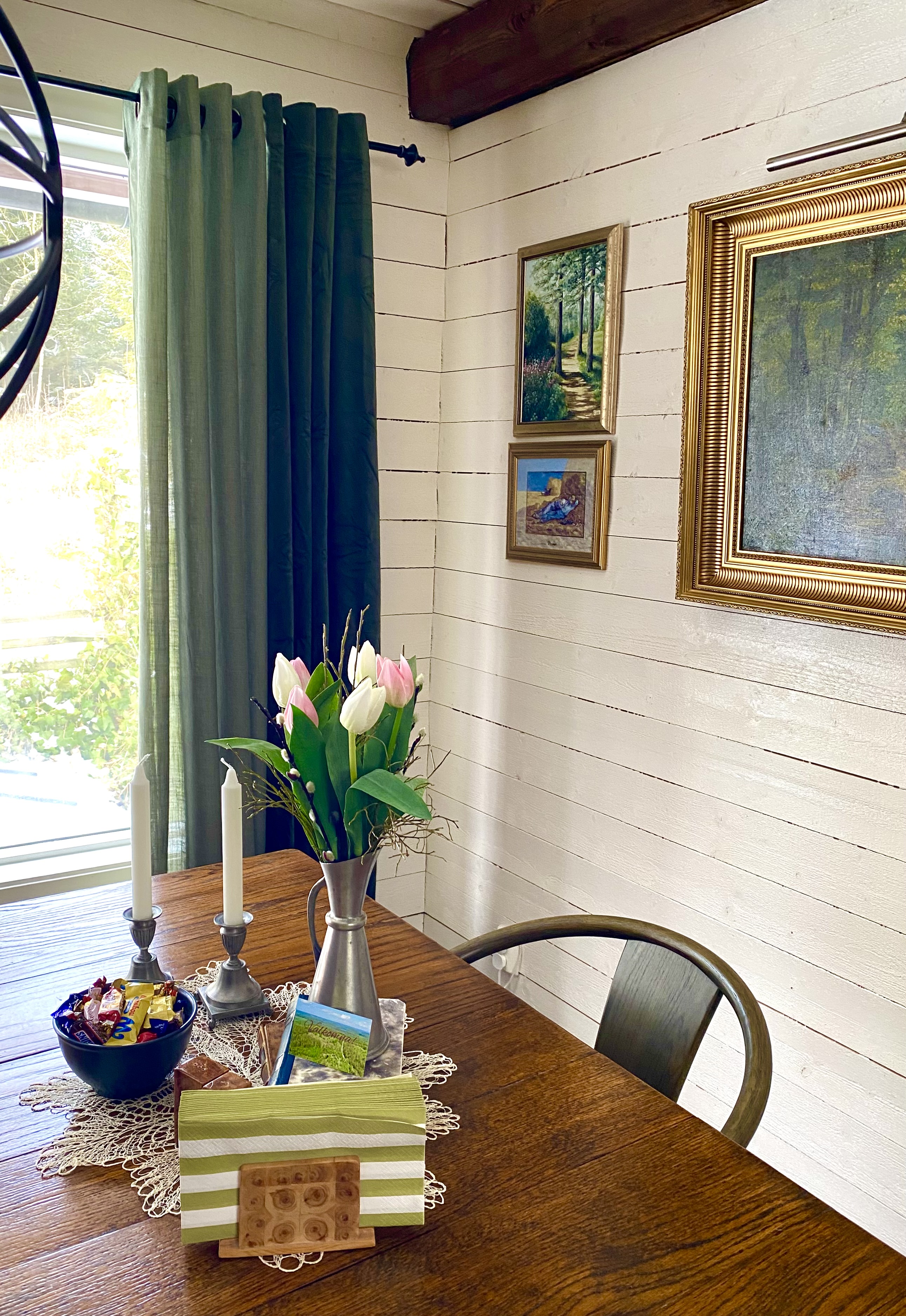 Våren är här! Det är så härligt att efter vintern och det massiva julpyntet, byta ut allt mot nytt och ljust. I år blev det mer grönt i stugan.