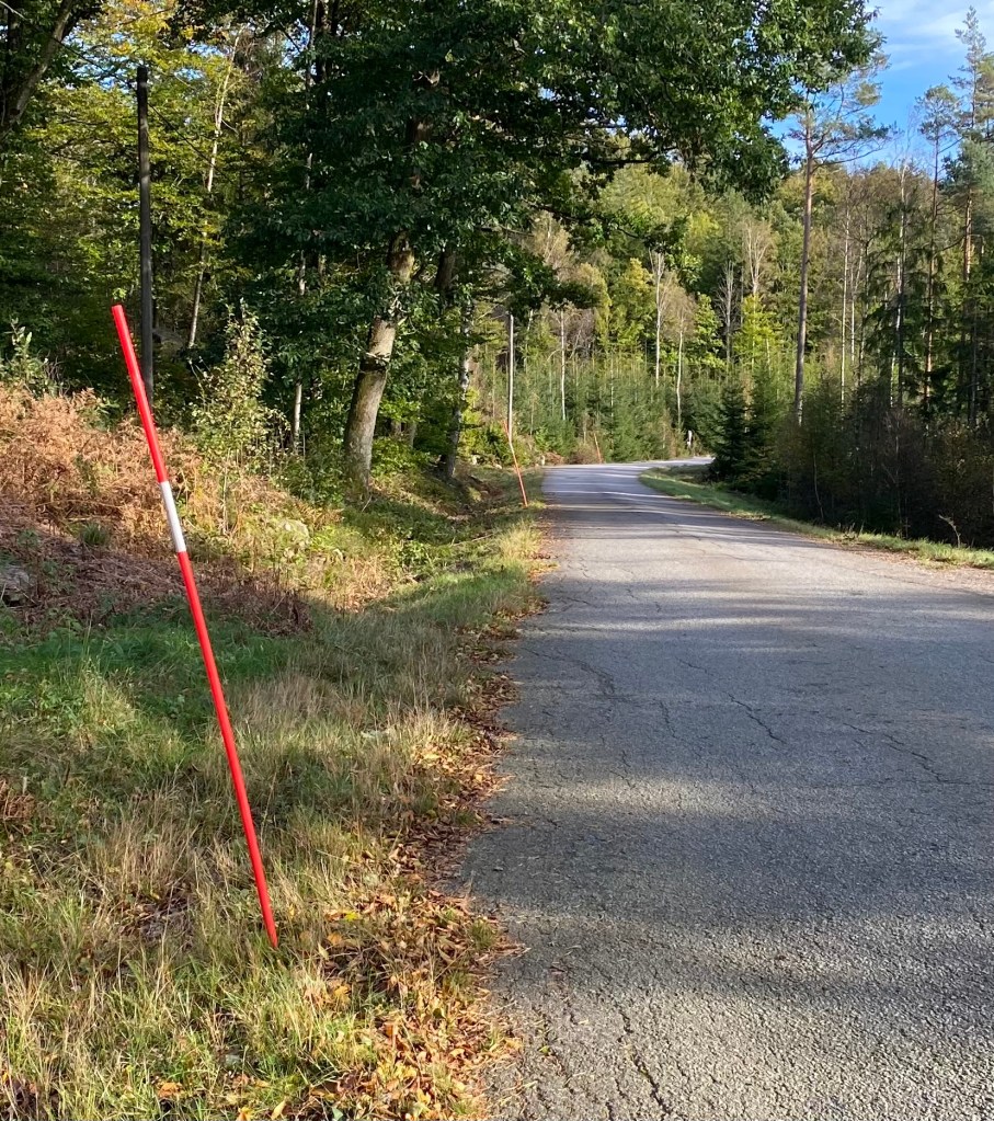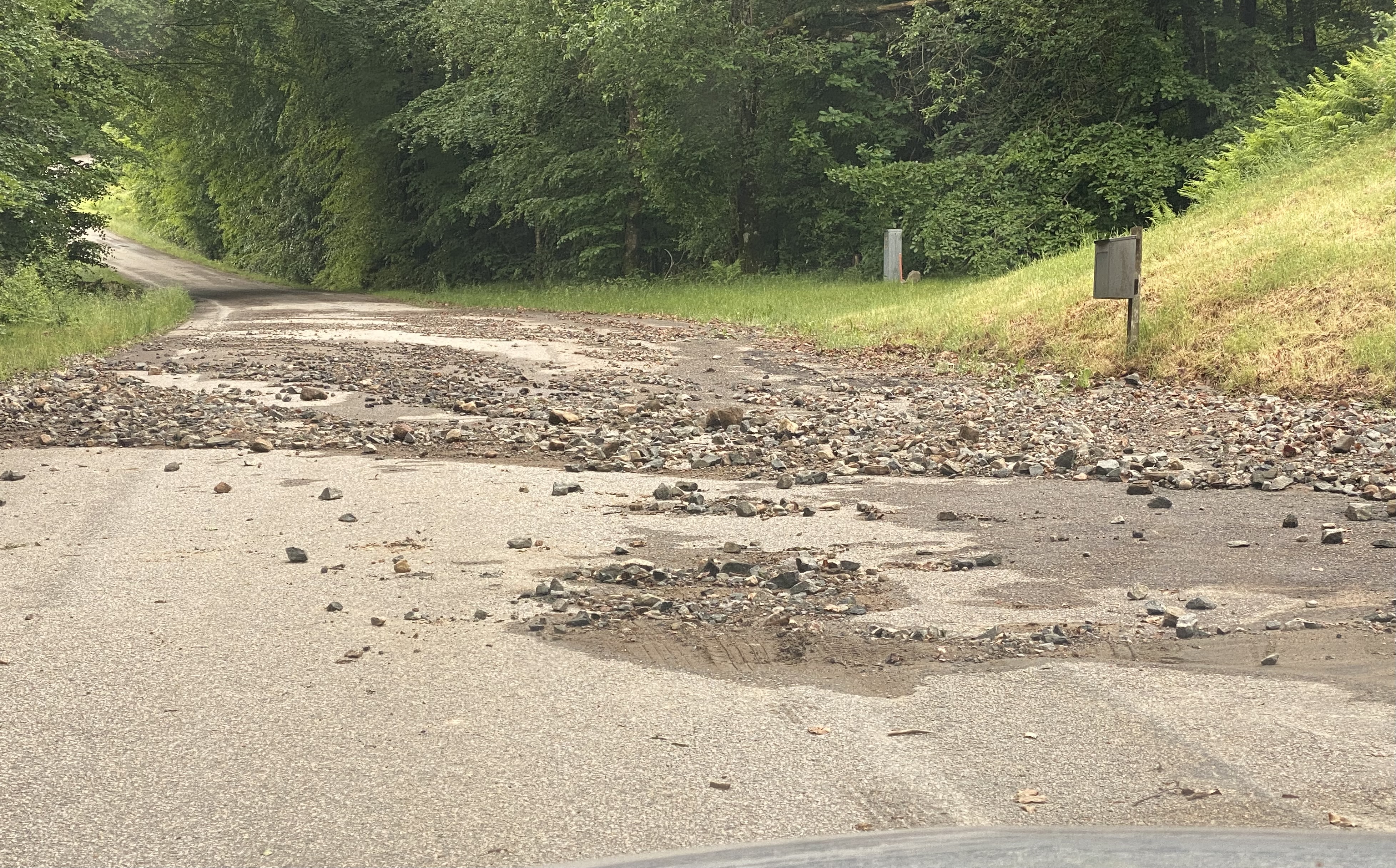 Dagen efter, när jag skulle köra till jobbet, hade en bäck svämmat över lägre ner på vägen, och tagit med sig stora stenar från en skogsväg. Verkligen tur att jag saktade in (trodde det var löv först) men såg ganska snart att det var stora stenar!