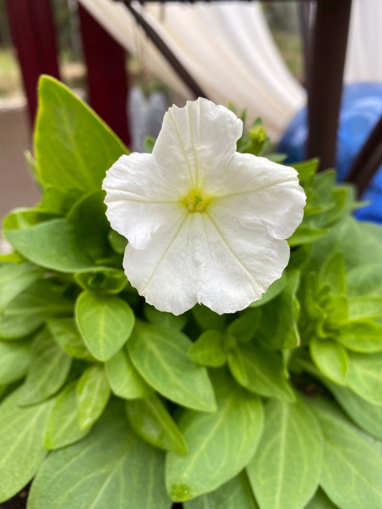 Nu tar det ordentlig fart i växthuset. Alla små plantor har blivit ganska stora plantor och behöver nu en ny kruka. I går slog min första petunia blomma ut, den blev vit! Men redan idag ser jag att många fler är på gång.