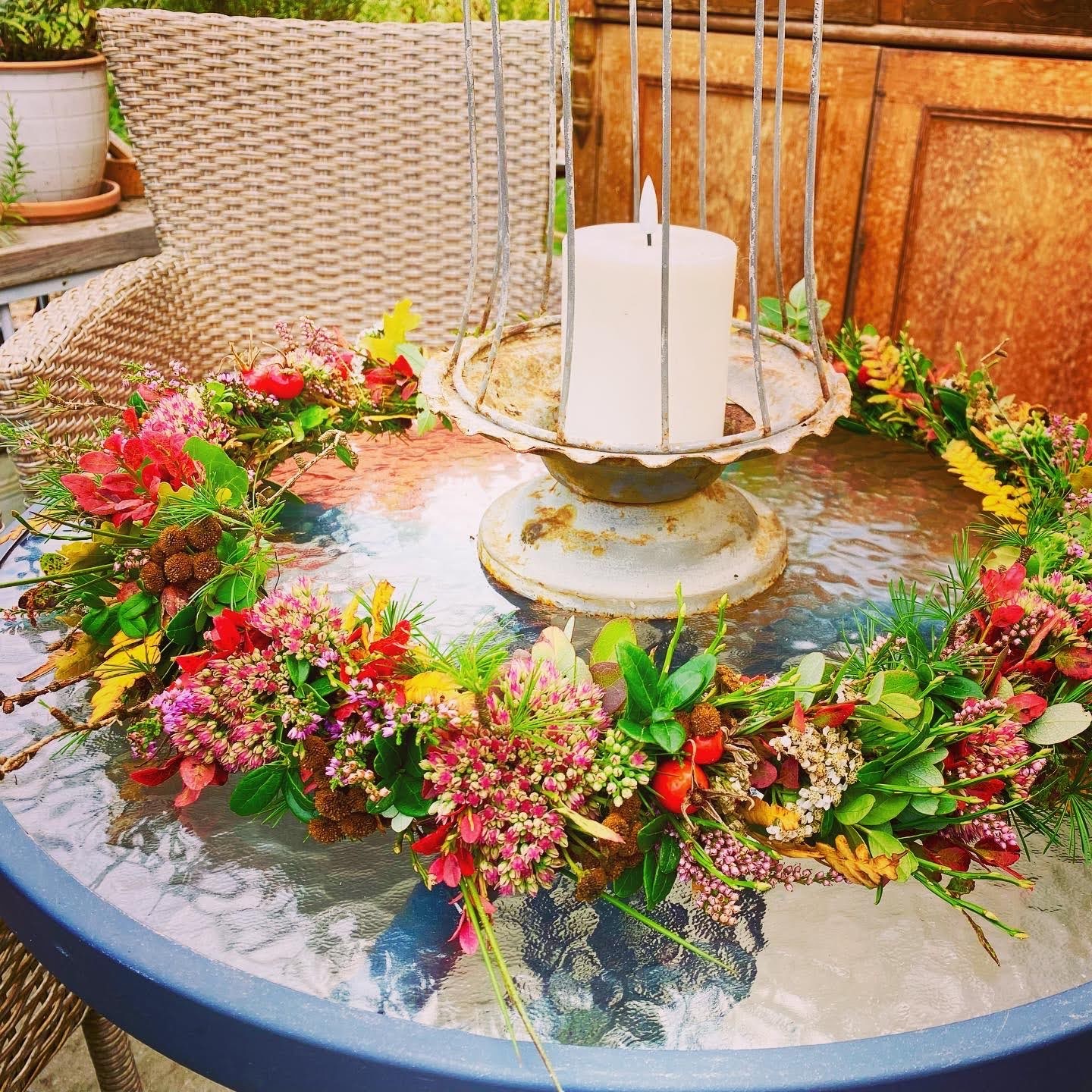 För en vecka sedan gick jag ut i skogen. Höstens färger är så fina. Varma. Jag fick lust att göra en höstkrans.