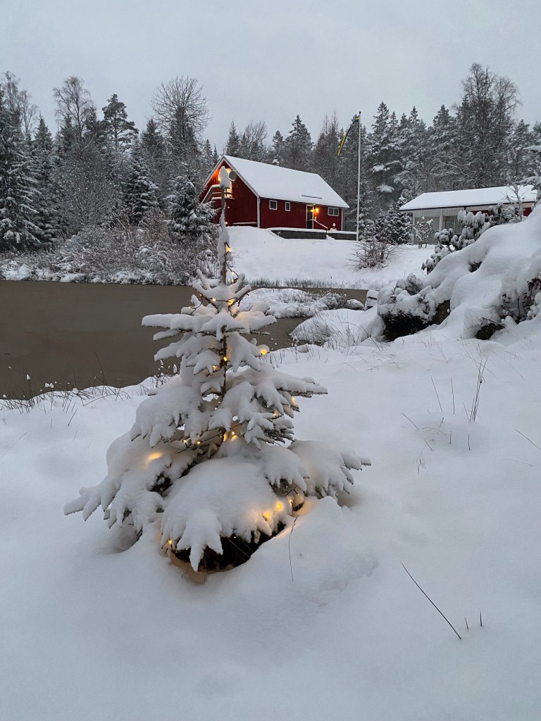 I förra veckan sov vi över i vår lilla strandstuga och det var 14 grader plus. Denna helgen blev det minusgrader och 15 cm snö. Men det var tur det. Vi kan inte ha det så varmt och få julstämning. Det går bara inte.
