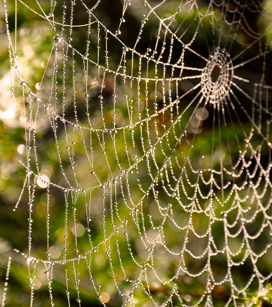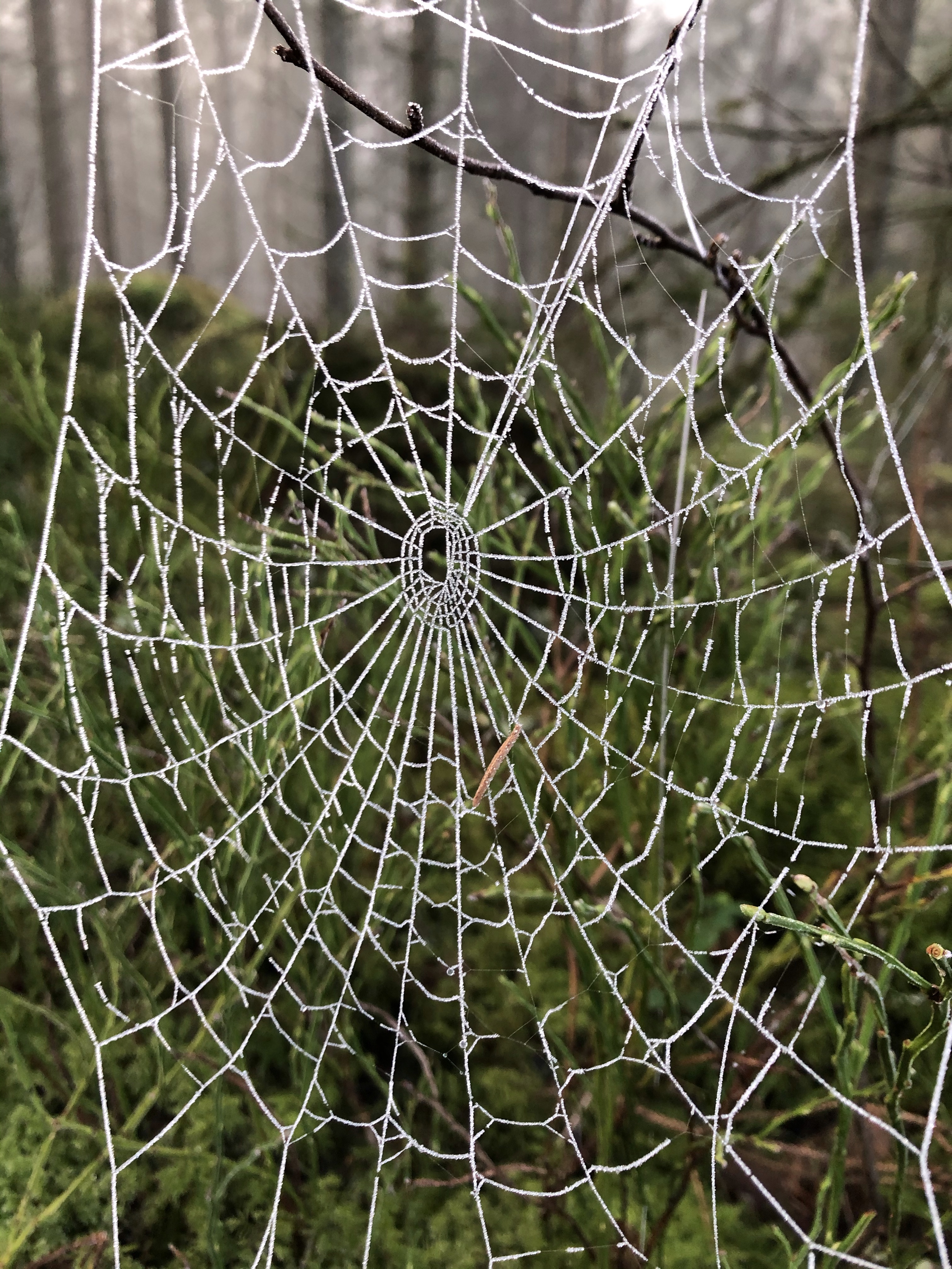 När jag går ut och öppnar för hönsen på morgonen, märks det att det är en helt annan luft nu. Frisk och kall Augustiluft. Rutorna i växthuset är fulla av dagg och på marken syns alla spindelnät så tydligt. Brukar faktiskt säga att det är spindelnätens tid. Det är så häftigt att fotografera dem. Ibland, när skärpan är rätt, syns alla små dropparna som diamantpärlor på en tråd. En av mina favoritbilder har jag ju som bakgrund till denna bloggen.