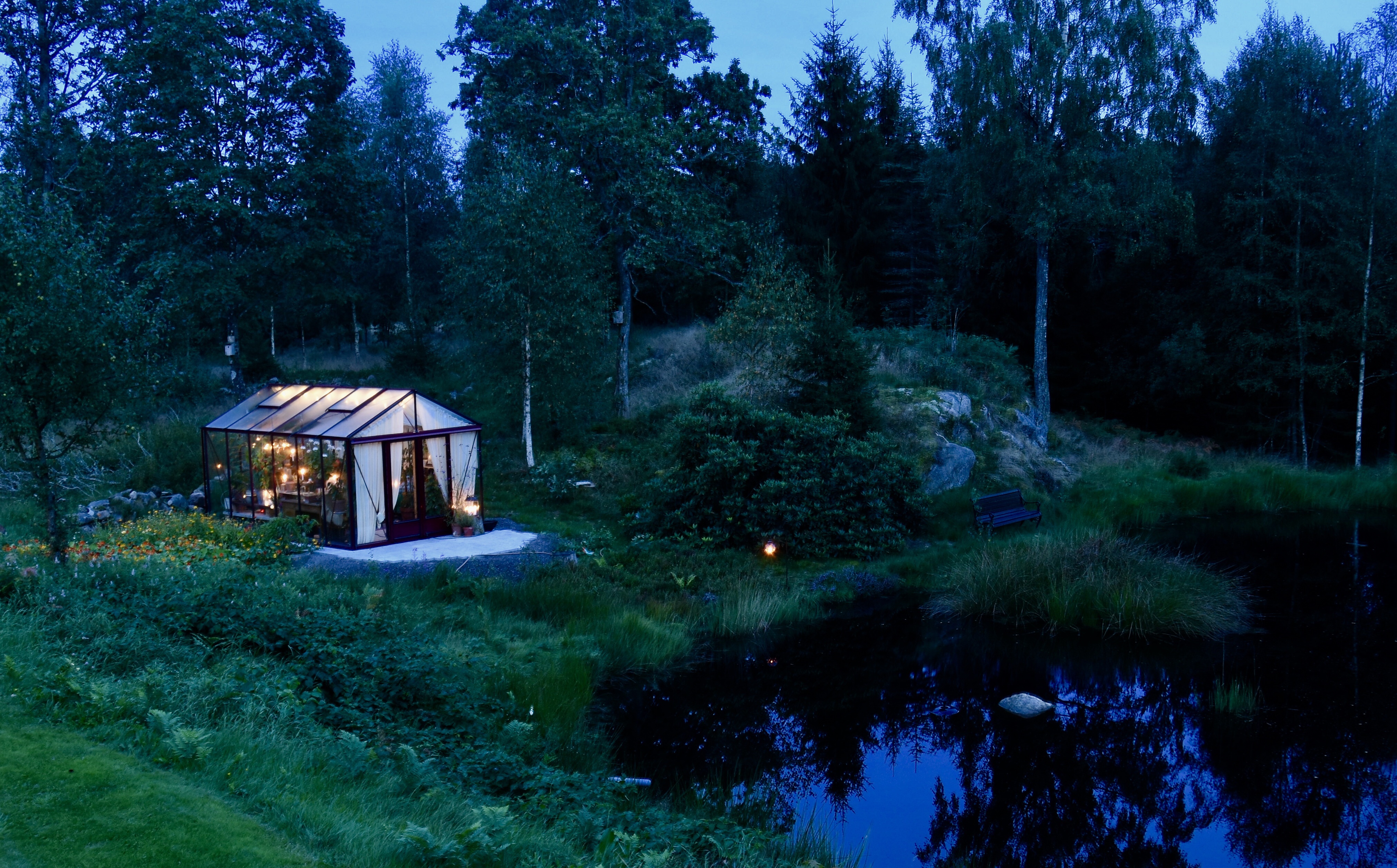 I växthuset ger jag nu plats för kaffe/glögg/öl/vin – mys. Såklart är våra gäster välkomna att sitta där och mysa. På dagarna är det varmt och skönt (om solen är framme). På kvällarna är där mysigt i ljusens sken. Kanske kommer det en liten katt 🐈⬛ och vill vara med och mysa.