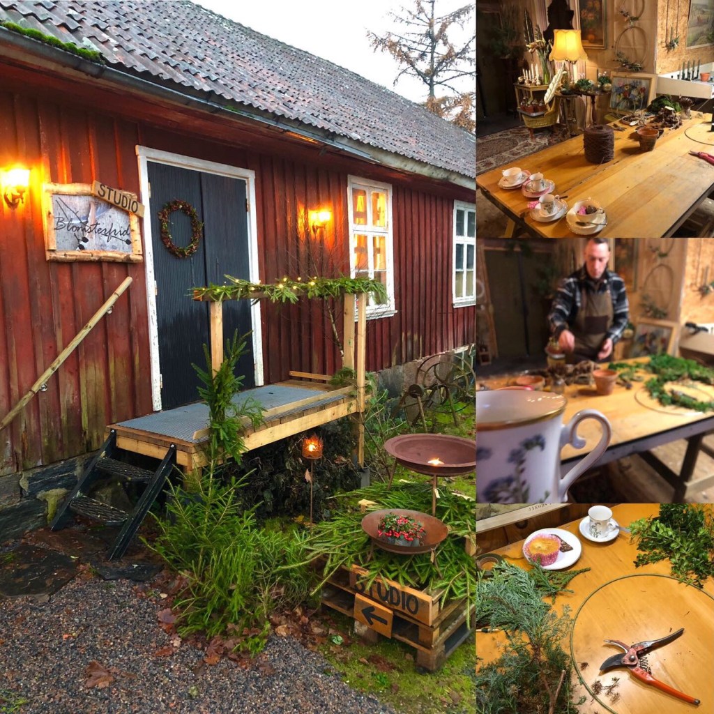 Den mysigaste, mörkaste och pyssligaste tiden på året är här. Veckan som gått har verkligen varit starten. Jag och min kära kollega, Jolita hade bokat en kranskurs på vår fina blomsteraffär i Fridhemsberg – Blomsterfrid. Morgan är så proffsig och hade ordnat allt så fint med fika och material till oss. Pedagogiskt gick han sedan igenom alla momenten? Om vi gjorde som han sa? Nja, inte hela tiden…. Efter många om och men, missöden, trassel och skratt. Fick vi till två fina kransar. Såklart hängdes den upp direkt när jag kom hem.