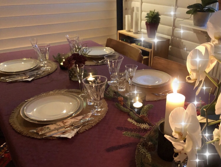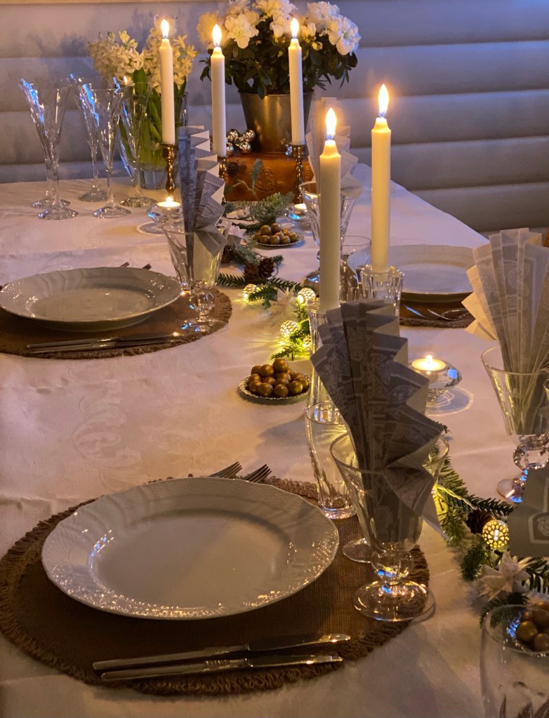 Jaha, och plötsligt blev det ett nytt år. Vi firade in det med våra kära grannar på Mossahägnad. I år var vi hos oss. Jag gillar att duka fint, och på nyårsafton ska det ju vara extra mycket ljus och glitter i silver, guld och kristall.