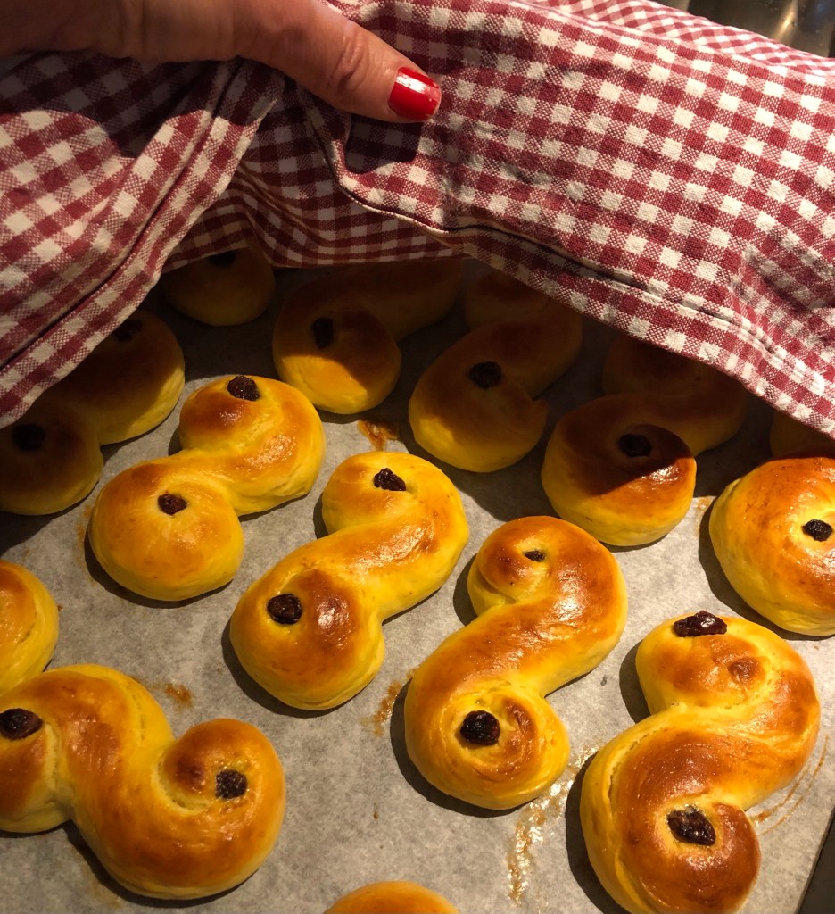 När man väl släppt lös ”juligheterna” är det inte lätt att sluta. Ensam hemma hela dagen (Ronny kör Gekås-lastbilen, mellan lagret i Falkenberg och affären, mycket att göra idag, massor med folk) då kan man ju baka lite. Köpte saffran i går, så det blev lussekatter idag – jammi.