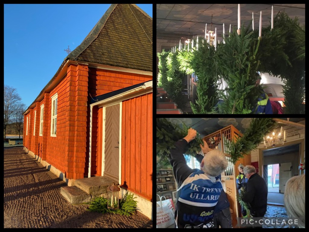 Nösslinge kyrka, vår gamla, lilla mysiga träkyrka, blev i år klädd (invändigt) med granris.