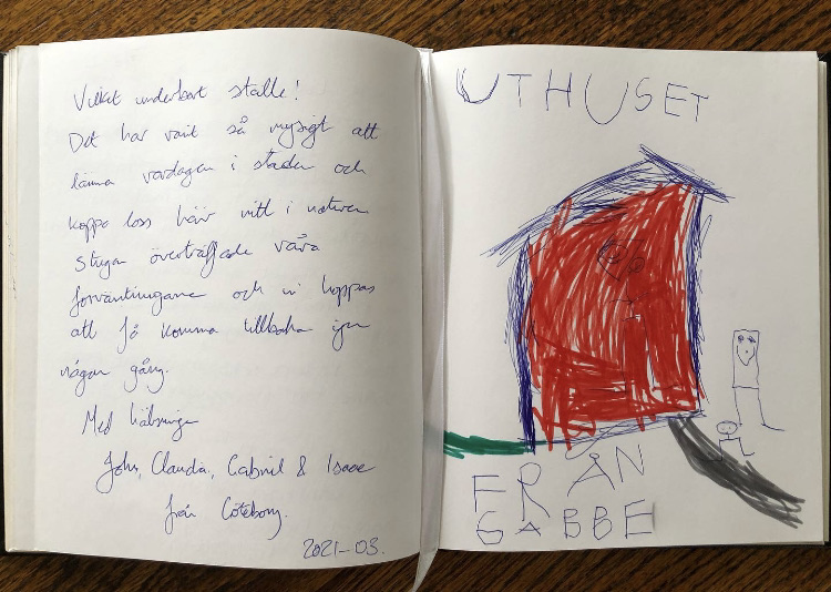 I helgen sa vi ”hej då” till två nya vänner och gäster från Frankfurt, de hade härliga sommardagar i stugan. I dag välkomnade vi två nya gäster från Wien – Österike (hade kört hela vägen, men Slamrekullen var deras andra stopp i Sverige). Vi är så glada över att få välkomna gäster från kontinenten igen. Glada att pandemin verkar släppa sitt grepp över oss – hoppas!