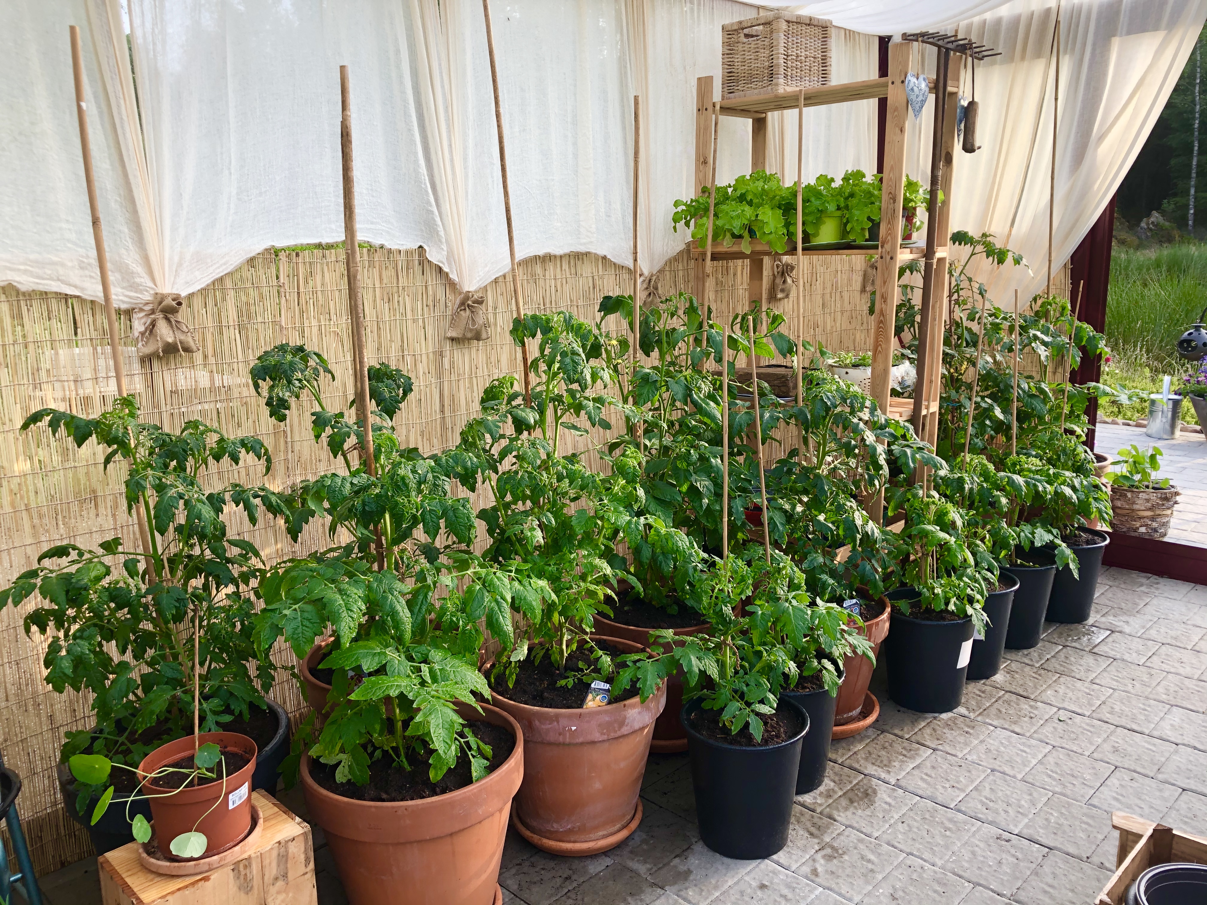 I växthuset frodas mina tomatplantor – det blir extra många i år tror jag. De flesta av plantorna har jag drivit upp från frön. I år testar jag dessa små frön –